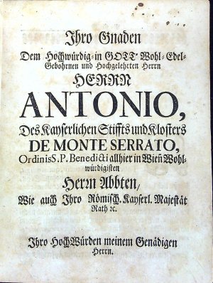 Wohl=angefüllter Wein=Keller, In welchem Manche durstige Seel sich mit einem Geistlichen Geseng=GOTT erquicken kan: Nach dem Exempel der himmlischen Braut in dem hohen Lied Salomonis, die sich berühmet, dass ihr Liebster sie in den Wein=Keller geführt habe, Introduxit me in Cellam Vinariam, Cont. 2. Ein solcher Keller ist gegenwärtiger Tractat, in welchem füsse und saure Trunck nach Belieben zu finden.