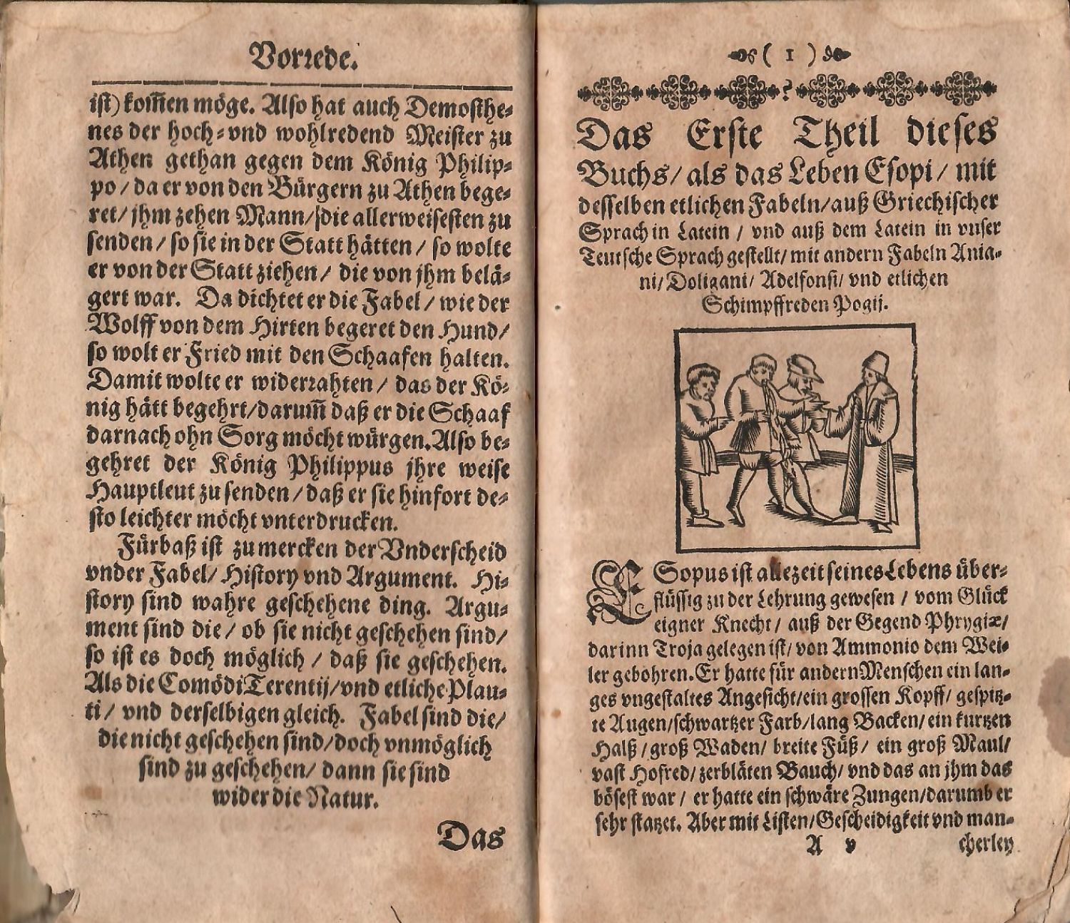 Der gantze Lehr=vn[nd] Sin[n]reiche Fabeldichter Esopus: Das ist/ Das gantze Leben vnnd Fabeln Esopi: Sam[m]t einem Anhang der Fabeln Aniani/ Adelfonsi/ vn[nd] etlicher Schimpff=Reden Pogij: Auch Außzügen schöner Fabeln vnd Exempeln D. Sebastian Brands. Alles mit schönen Figuren zu besserer Einbildung in Druck gegeben/.