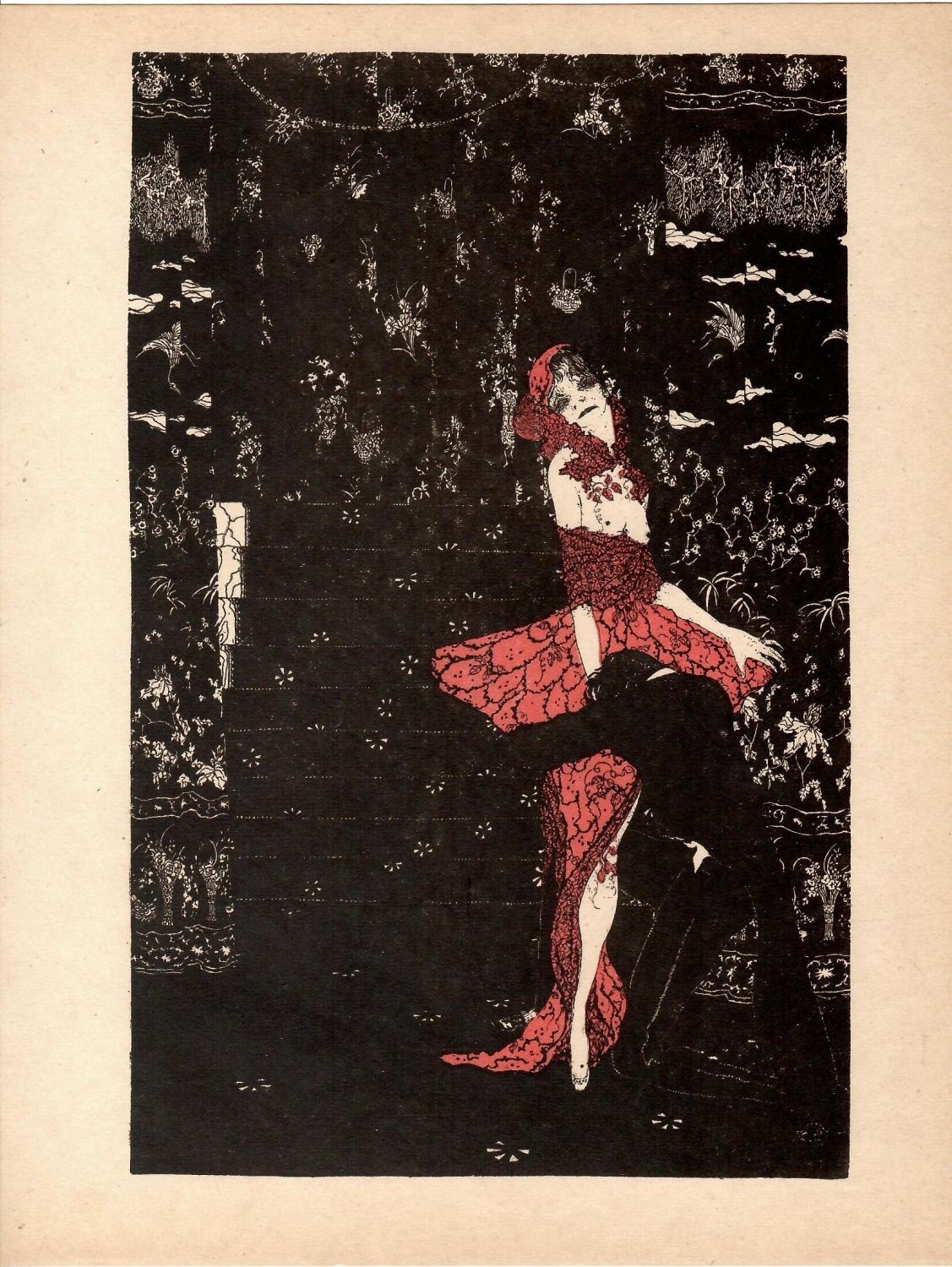 Jeden z 500 vydaných exemplářů. Album vyšlo samostatně jako doplněk dvou Wedekindových knih "Pandora" a "Erdgeist", které autor vyzdobil svými celkem 24 ilustracemi. V námi nabízeném souboru je ilustrací 26. Původní kartonová vazba s chlopněmi, potažená světle červeným papírem a pergamen. hřbetem, na přední desce vazby tlačený a zlacený název. Vazba zašpiněná, pergamen. pokryv hřbetu též místy zašpiněný. V albu jsou volně vložené jednotlivé listy o celkovém rozměru 278 x 220 mm, dvoubarevně tištěné (červeno-černě).<br>Alastair, vlastním jménem Hans Henning von Voigt (20.10. 1887 Karlsruhe - 30.10. 1969 Mnichov), kreslíř, ilustrátor, překladatel a spisovatel, pianista, tanečník, světoběžník a mystifikátor. (Dle některých pramenů byl nelegitimním synem anglického krále Edvarda VII. a jeho španělské milenky, zpěvačky rusko-židovského původu). Výtvarným vzděláním autodidakt, byl ovlivněn secesí a na jeho styl měli mimo jiné vliv Beardsley, Bakst, Somoff. Ve svém "wedekindovském" cyklu postaveném na kontrastu černé, červené a bílé zobrazil erotizující scény ve zkreslené perspektivě v kontrastu s plochou zdobenou krajkovím, řásněmi a různými doplňky oděvu.