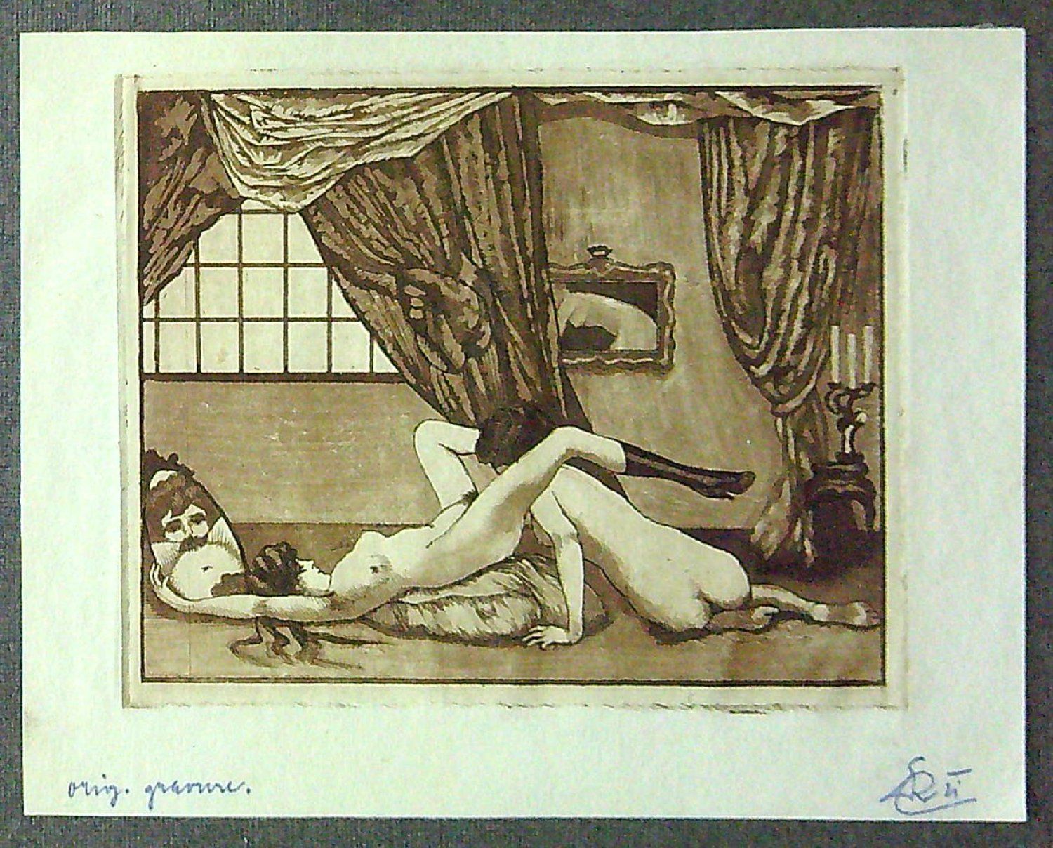 Album 9 původních leptů kombinovaných s akvatintou, vpravo dole pod deskou autorem monogramem signovaných (ER - ?) a datovaných, zčásti tištěných na japanu (4 listy). Rozměr listů (95 x 50 až 110 x 130 mm). Na přední straně obálky původní lept, který je též obsažen jako devátý v albu. - Původní obálka z hadrového papíru, ve hřbetu s blokem spojená červenou tkaninou, na předsádkách dobový papír zdobený žlutým ornamentem. Jednotlivé listy při horních okrajích namontované na tuhý podkladový papír.