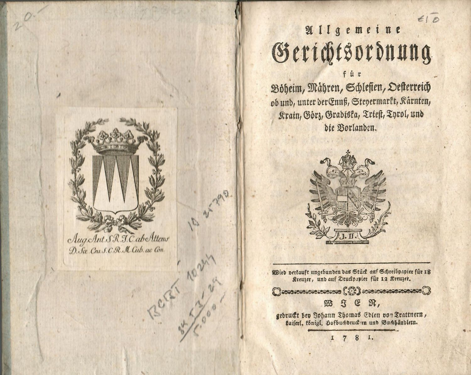 Allgemeine Gerichtsordnung für Böheim, Mähren, Schlessien, Oesterreich ob und, unter der Ennß, Steyermarkt, Kärnten, Krain, Görz, Gradiska, Triest, Tyrol, und die Vorlanden.