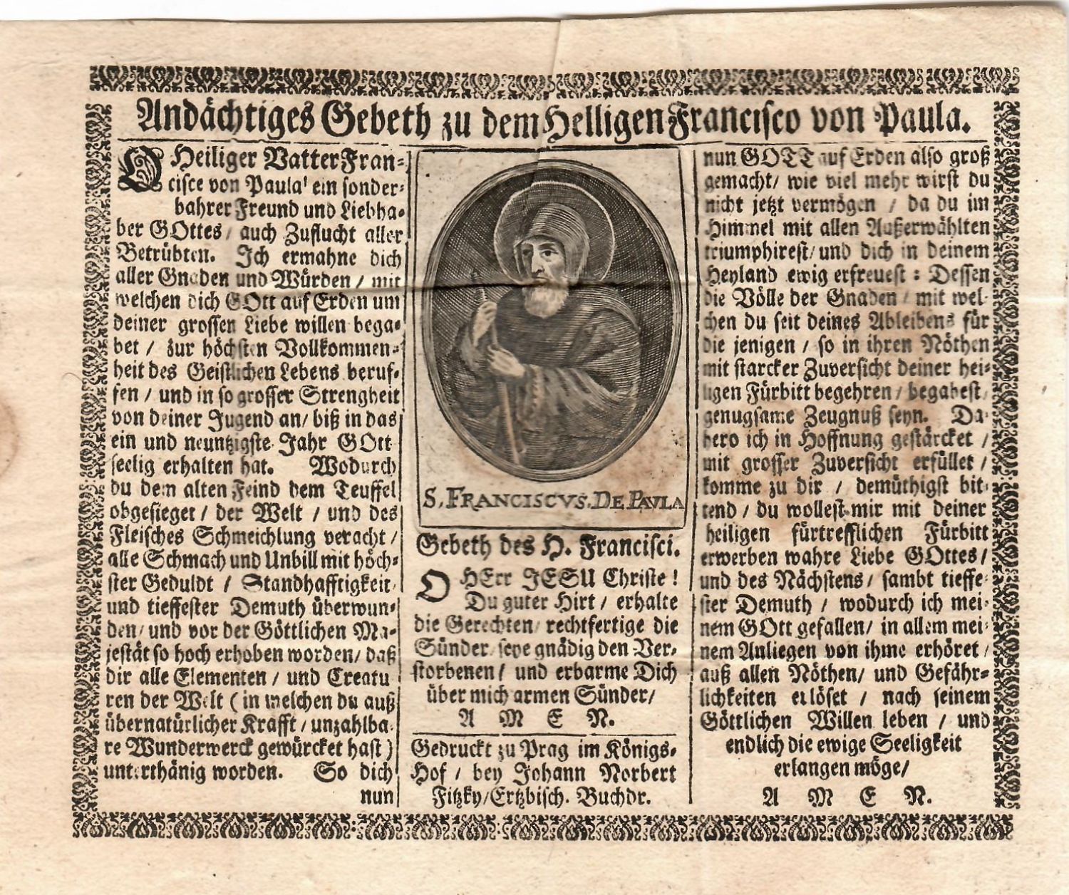 Andächtiges Gebeth zu dem Helligen (sic !) Francisco von Paula.
