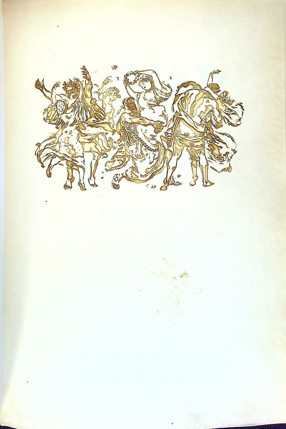 Ex. č. 9 z 10 vydaných v řeckém jazyce a rezervovaných pro helenisty (krom toho vyšlo ve francouzštině 100 ex. přednostního vydání tištěného na císařském japanu a 150 ex. na velínu). Lepty vytiskl na ručním lisu Alfred Porcabeuf, typograficky upravil Philippe Renouard, úvodním slovem ve francouzském jazyce opatřil Lucien Dhuys. Červeno-černě tištěný tit. list s vinětou, v textu 12 drobných černobílých vinět ( z toho tři odlišné od francouského vydání). - Původní pap. obálka s chlopněmi, na přední straně červeno-černě přetištěný titulní list. Rozměr knižního bloku 290x202 mm.