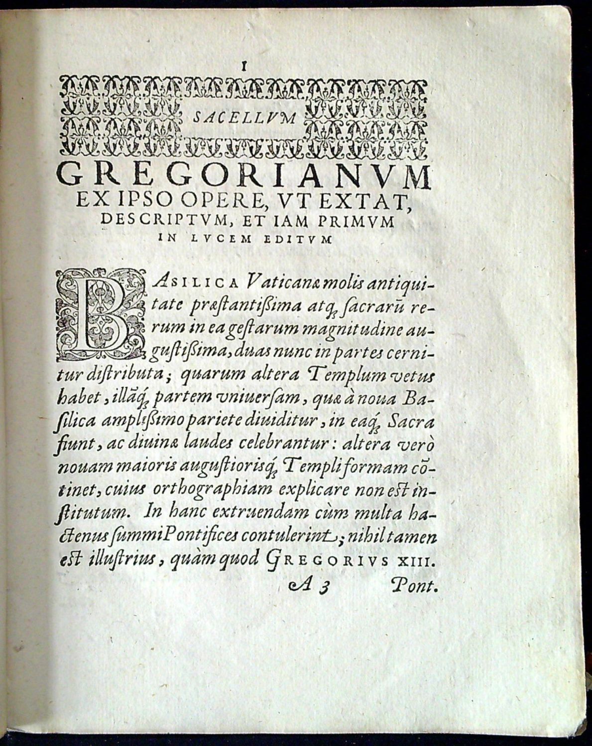 Sacellum Gregorianum ex ipso opere, ut extat, descriptum, et iam primum in lucem editum ab Ascanio Valentino.