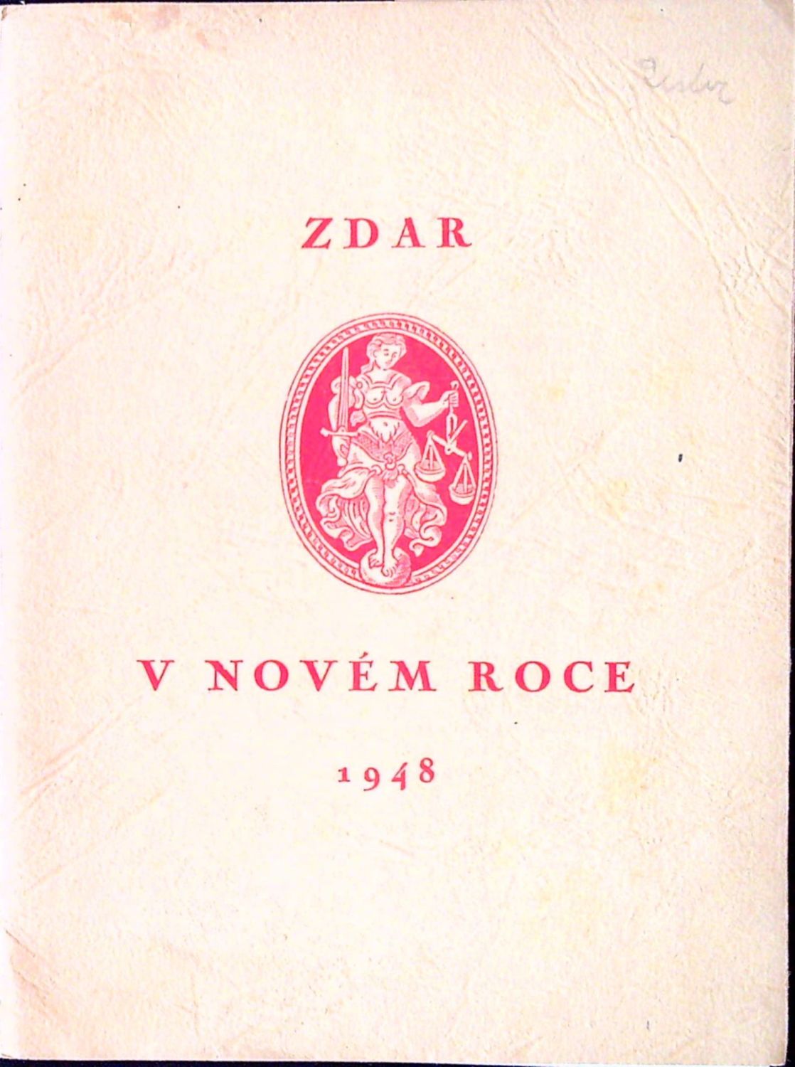 Jeden z 99 vydaných exemplářů, které vytiskl Jaromír Novák v knihtiskárně Břetislav Vašata v Praze. Jako přání zduru v Novém roce vydali Libuše a Kamill Reslerovi. Původní pap. obálka s chlopněmi, na přední straně červeně tištěné přání a symbol spravedlnosti v oválném medailonu.