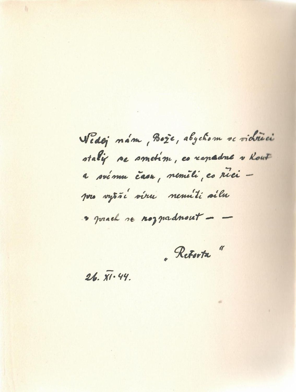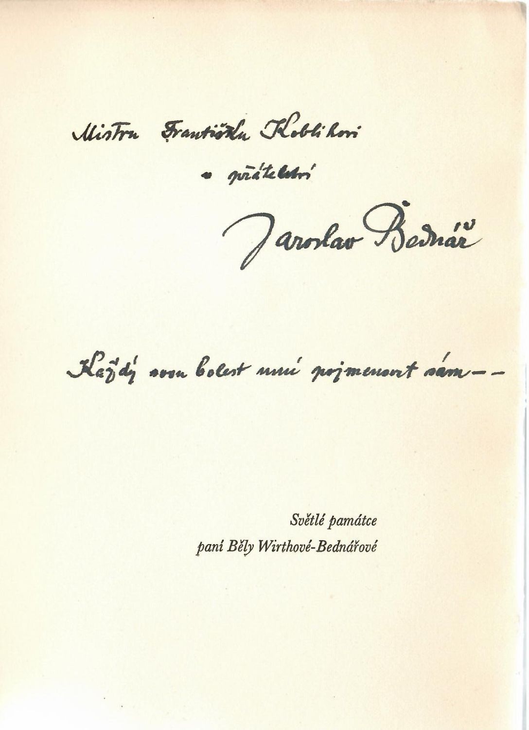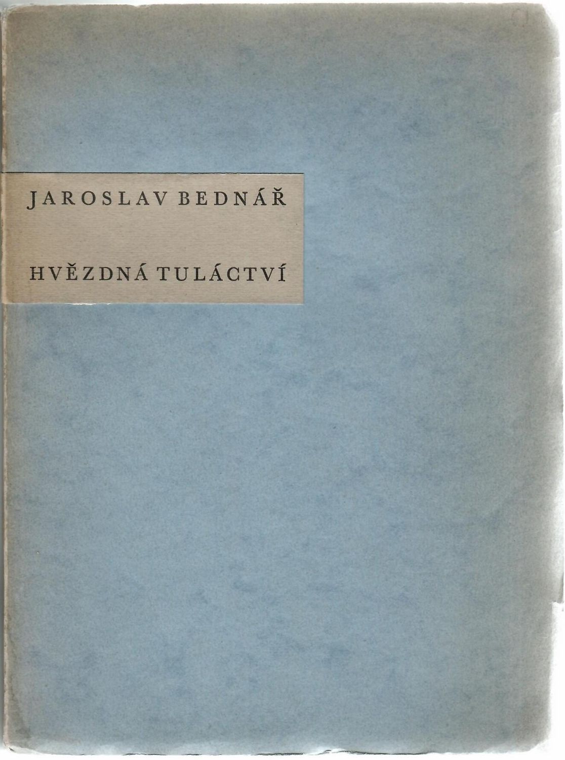 Ve 400 číslovaných, spisovatelem podepsaných výt. na Van Gelderu vytiskla Průmyslová tiskárna; černý a červený tisk. - Tento ex. nečíslován, avšak s černým inkoustem psanou dedikací autora Františku Koblihovi na straně s tištěným věnováním knihy památce Běly Wirthové-Bednářové a s touž rukou psaným pětiverším s datem 26.XI.44 a přípisem "Retorta"; rozšířené vydání této sbírky s názvem "Hvězdná tuláctví - Retorta", vyšlo r. 1946. Obálka v horní části odlepená od hřbetu, na hřbetě a při okrajích mírně zahnědlá a v dolních rozích lehce pomačkaná, jinak dobrý stav.