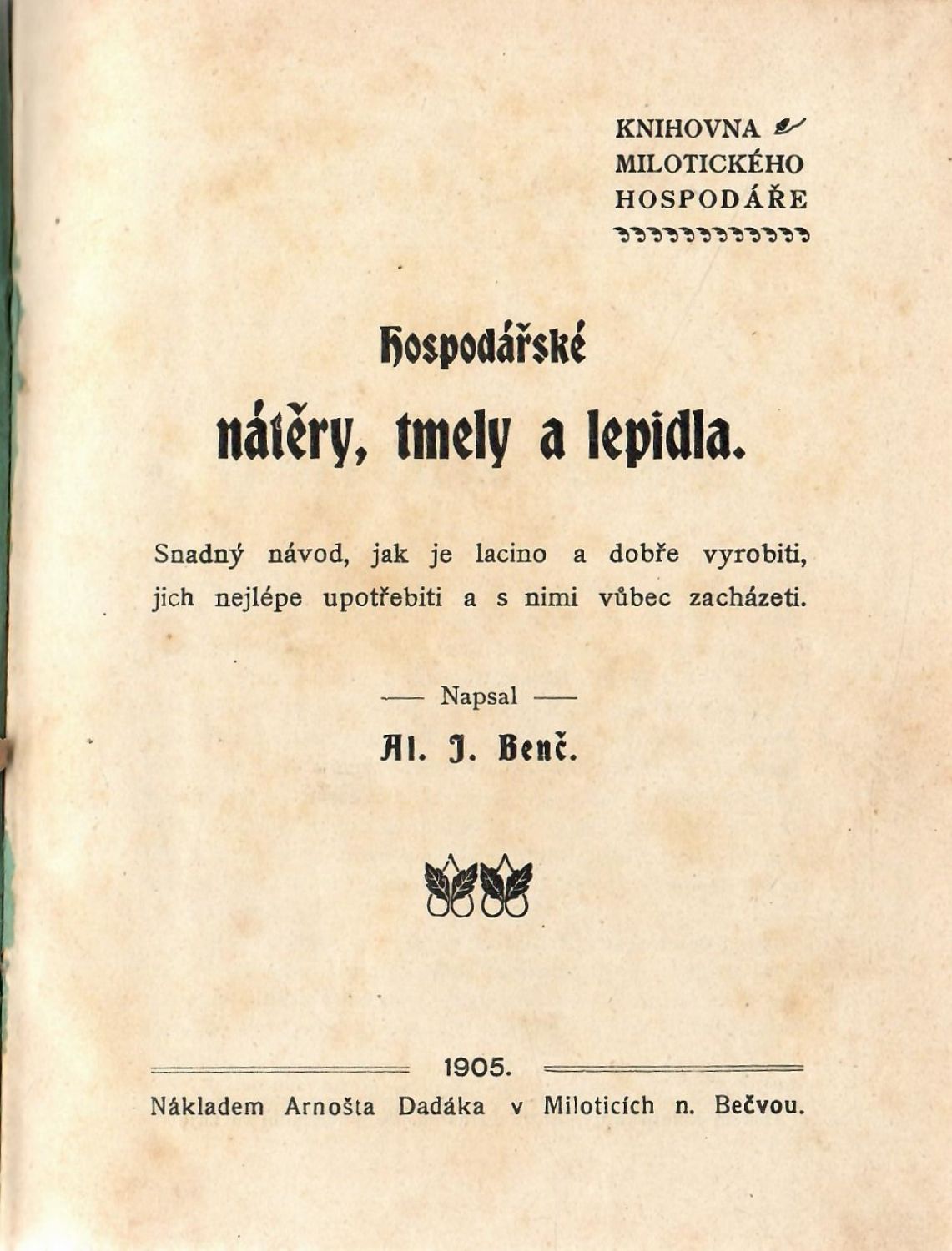 Hospodářské nátěry, tmely a lepidla. Snadný návod, jak je lacino a dobře vyrobiti, jich nejlépe upotřebiti a s nimi vůbec zacházeti.