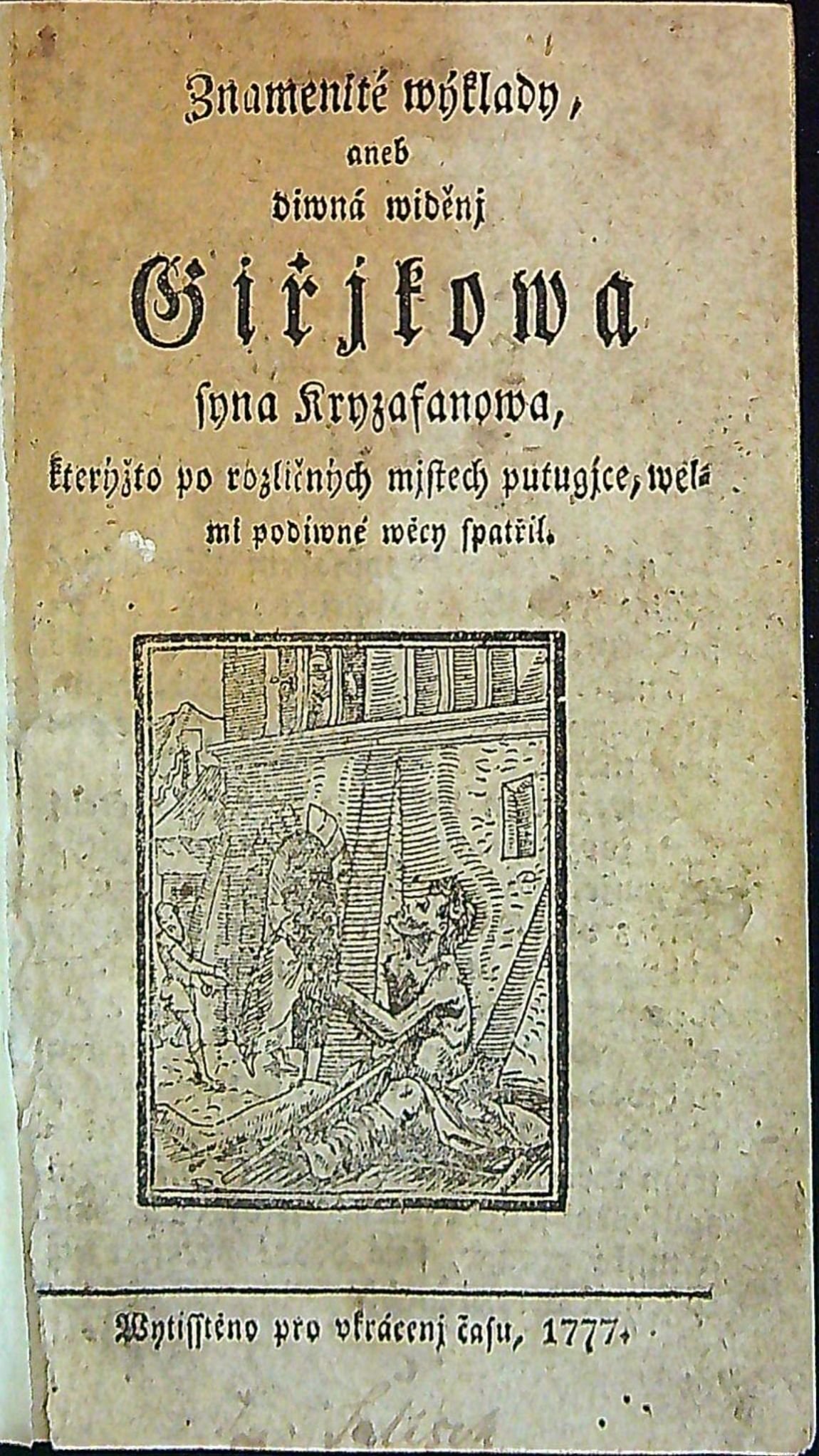 Znamenité wýklady, aneb diwná widěnj Giřjkowa syna Kryzafanowa, kterýžto po rozličných mjstech putugjce, welmi podiwné wěcy spatřil.