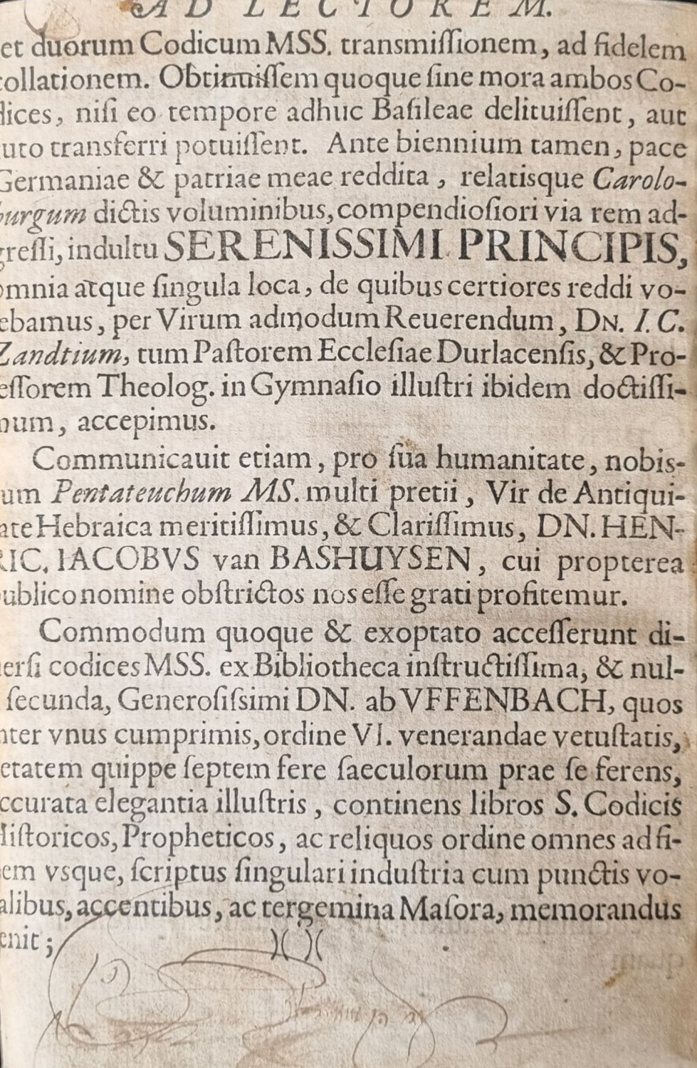 BIBLIA HEBRAICA, ad optimorum tam impressorum, speciatim, CLODII, LEVSDENII, IABLONSI, OPITII, quam manuscriptorum aliquot codicum fidem collata. Direxit opus, nouas capitum inscriptiones praesationemque adposuit D. ION. HENR. MAIVS, SS. Theol. Professor in Vniuersitate Gieffensi, Consistor. Princip. Adsessor, Districtus Alsfeld & Marburg Darmstattinae partis Superintendens. Callationem vero sedulam instituit, annotationem ac interpretationem vocum ..... Georgius Christianus Bürcklin, .....