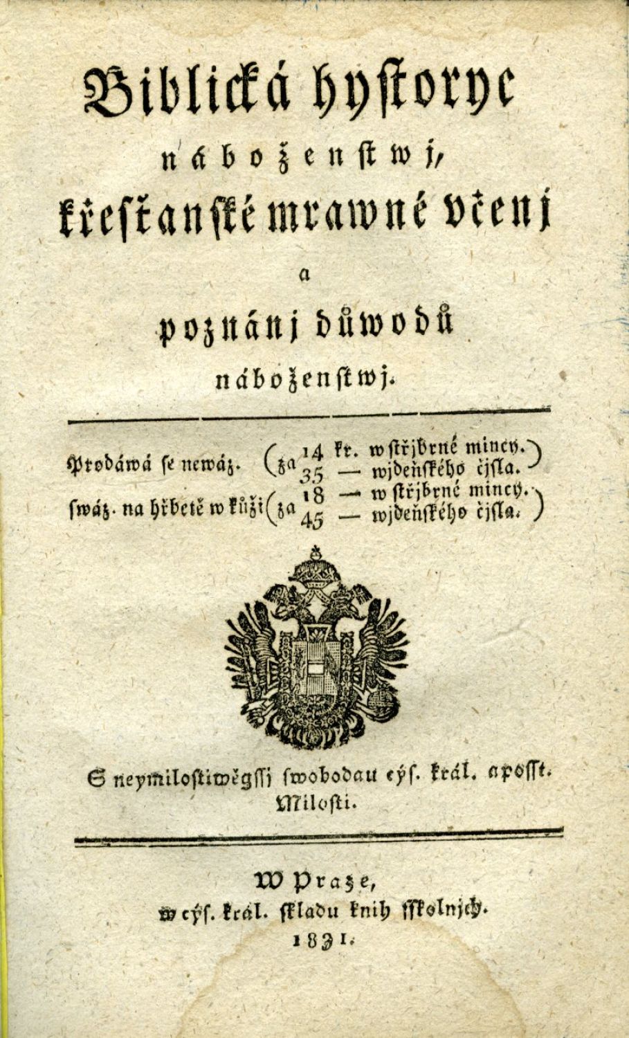 Biblická hystorye náboženstwj, křesťanské mrawné včenj a poznánj důwodů náboženstwj. ...