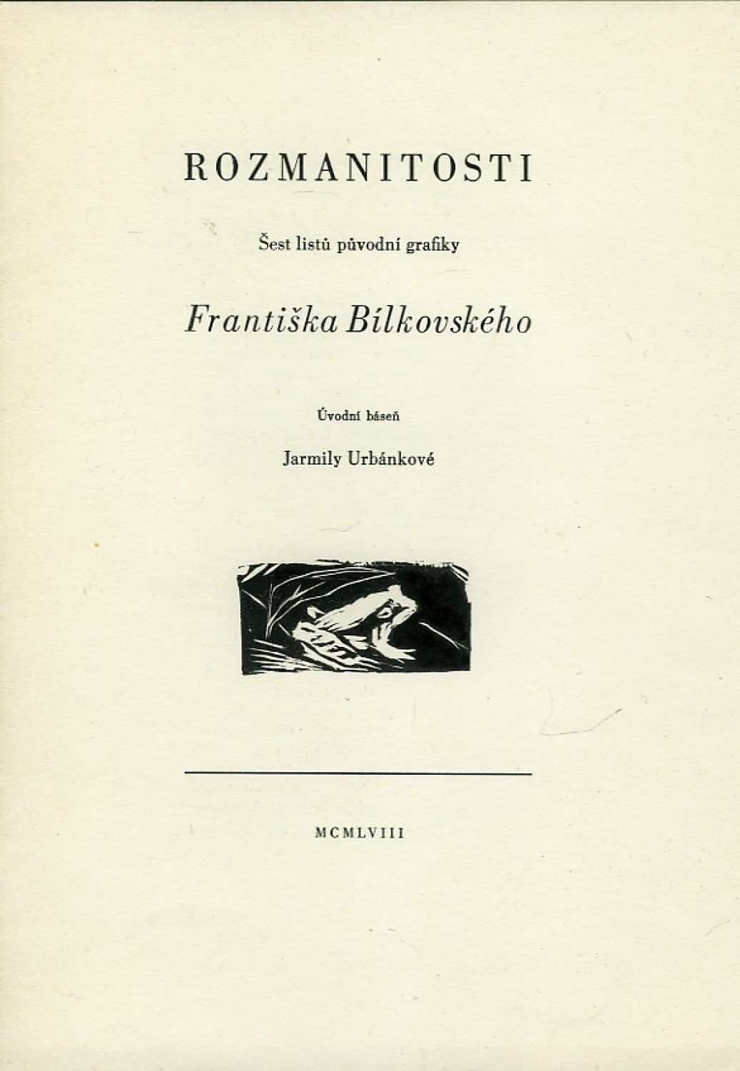 S úvodní básní věnovanou umělci Jarmilou Urbánkovou. - Ručně čísl. ex. 5/60. Výborný stav, přiložen leták vydavatelů.