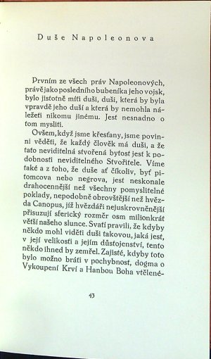 Dvoubarevně tištěný tit. list s vinětou, červeně tištěný předtitul. Přeložil Josef Florian. - Kožená vazba, ve hřbetu 4 vazy, ve druhém poli tlačený a zlacený název.