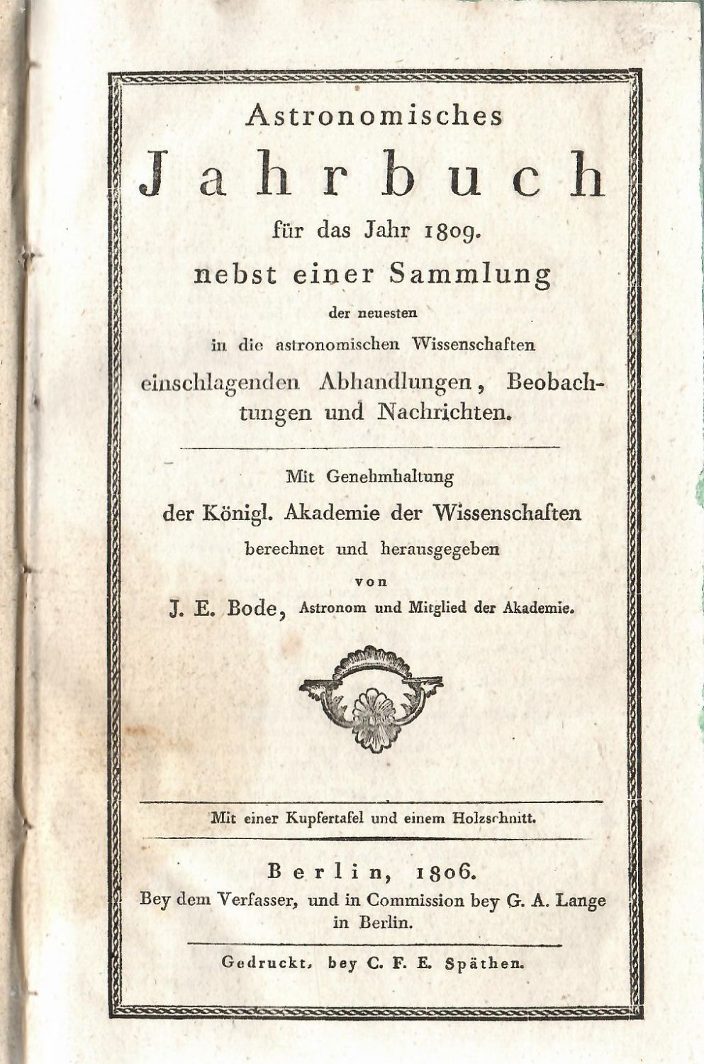 Astronomisches Jahrbuch für das Jahr 1809. nebst einer Sammlung der neuesten in die astronomischen Wissenschaften einschlagenden Abhandlungen, Beobachtungen und Nachrichten.