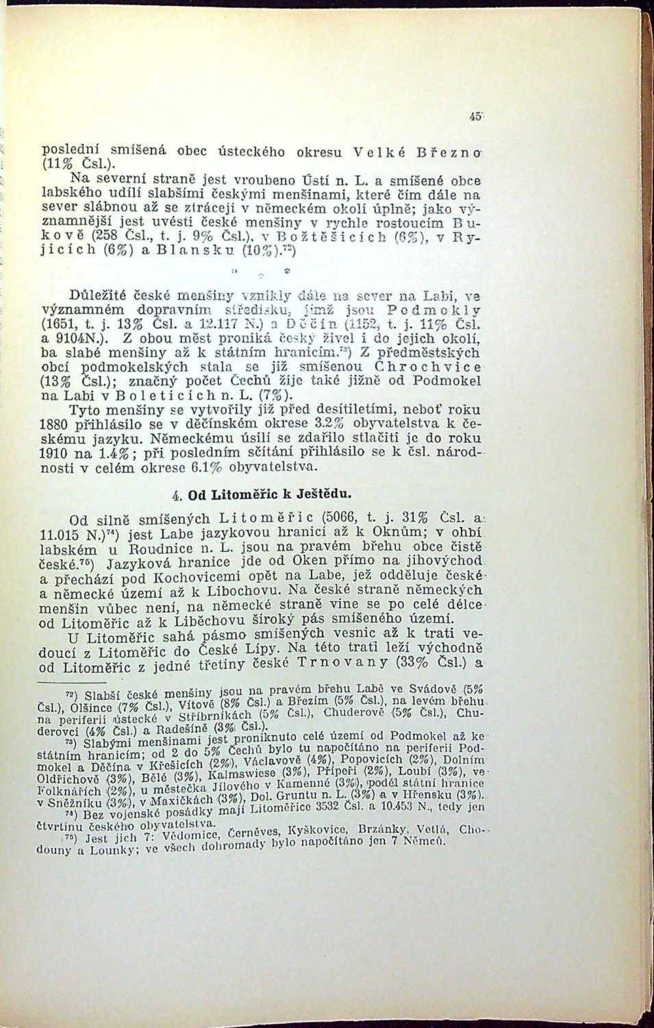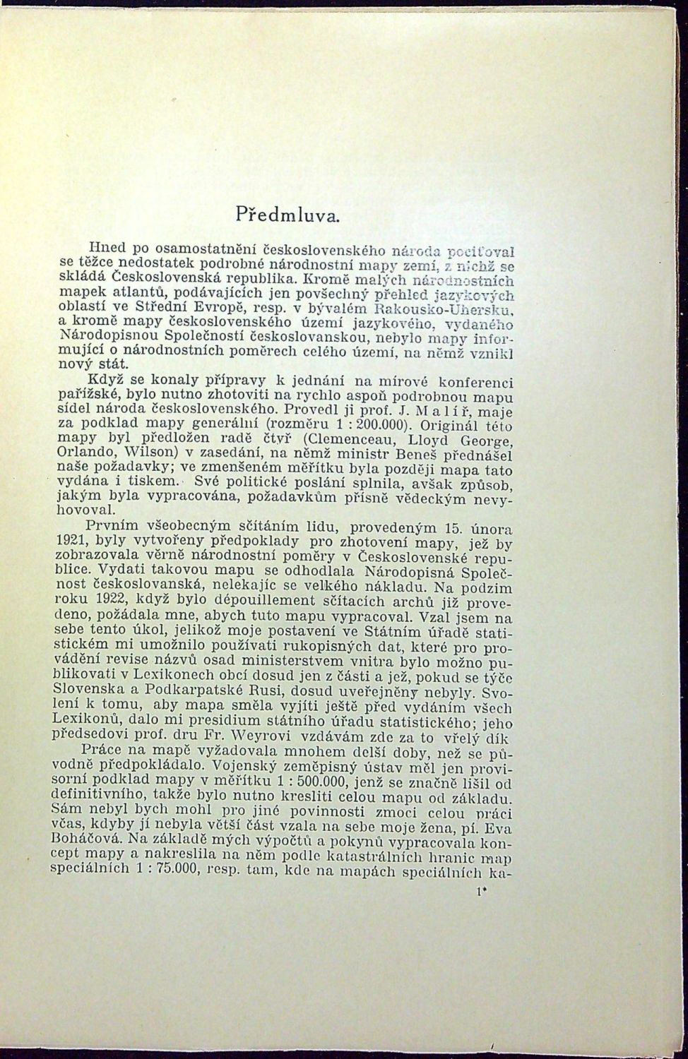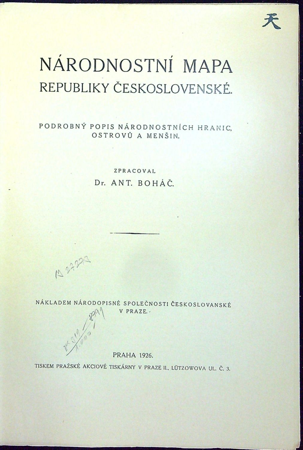 Národnostní mapa Republiky československé. Podrobný popis národnostních hranic, ostrovů a menšin.