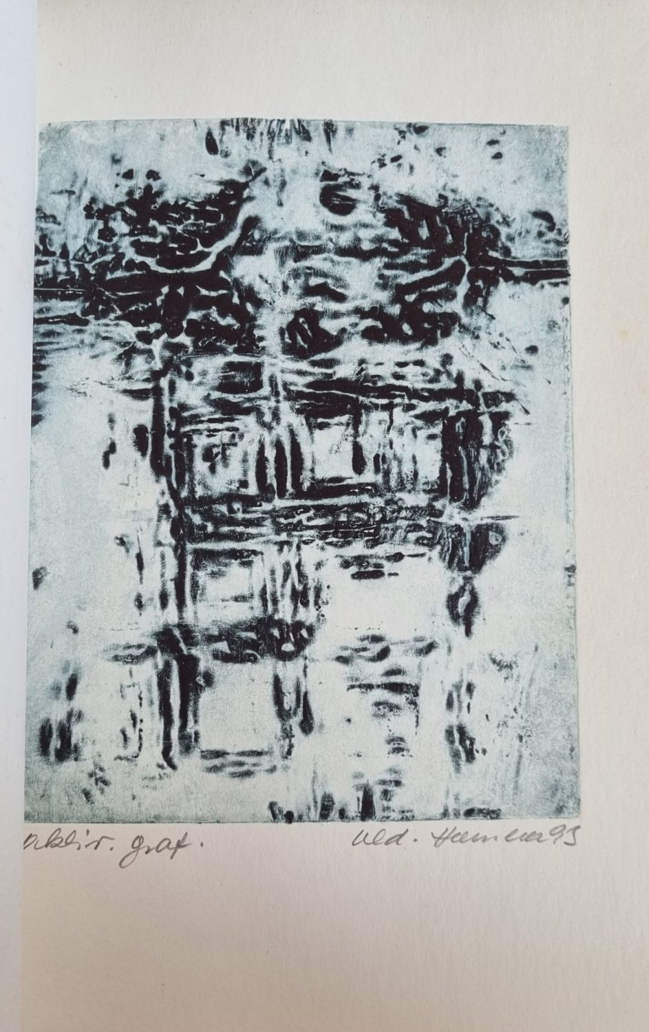 Jeden z 20 výtisků přednostního vydání s původní aktivní grafikou Oldřicha Hamery ve frontispisu, autorem podepsanou a datovanou. Na přední straně obálky barevná reprodukce Hamerova monotypu. K vydání připravil Vladislav Merhaut. Na patitulu rkp. dedikace Hamerova sběrateli Rudolfu Hlavovi.