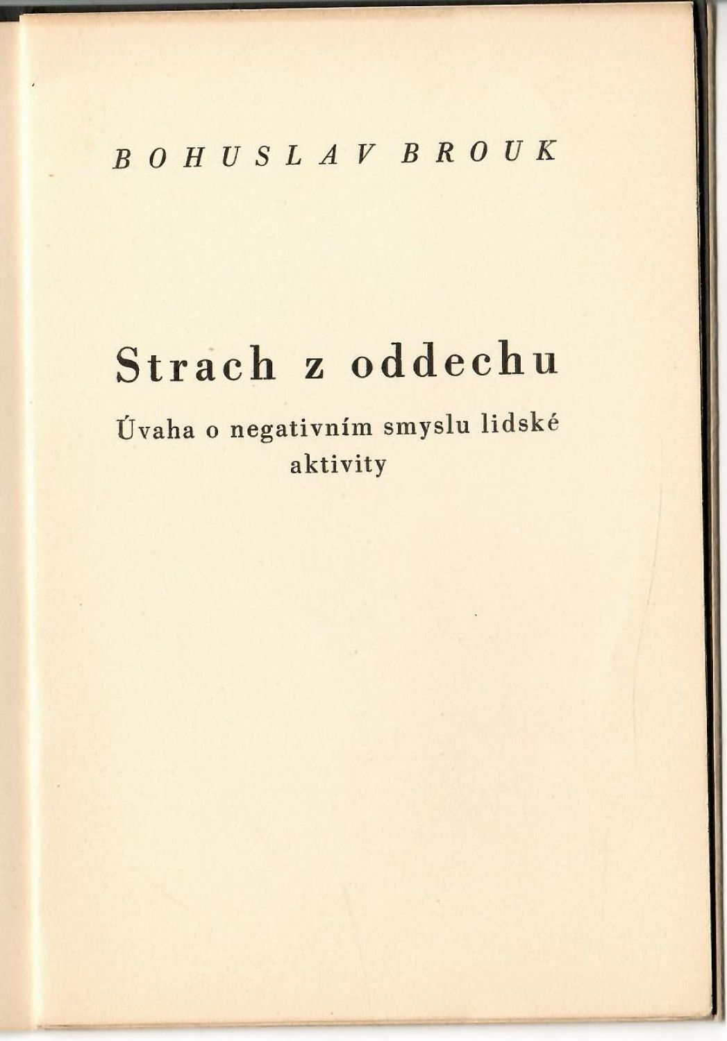 Nákladem vlastním vydal autor jako soukromý tisk k Novému roku 1940, vytiskla knihtiskárna Litera v Praze.<br>Původní obálka z tužšího papíru s chlopněmi pojatá jako parte, na přední i zadní straně obálky drobné ilustrace, text volně vložený do černého dvoulistu (původní adjustace). Vloženo Broukovo smuteční oznámení o smrti jeho matky.<br>Znamenité a stále platné Broukovo zamyšlení v poslední (šesté) jím vydané novoroční úvaze.