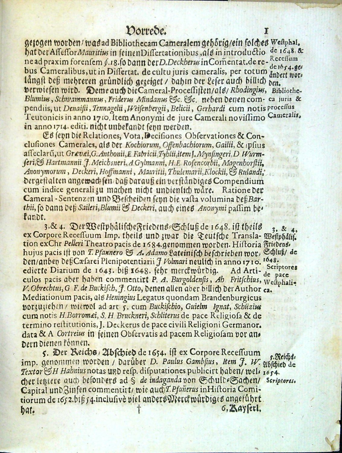 Ve front. mědirytina od norimberského rytce F. Nunzera, živá záhlaví, tisk ve dvou sloupcích. Pásové vlysy z rostlinných ornamentů, ozdobné tyče ze sluníček, iniciály propletené úponky zalomené do výše 3-10 řádků, dřevořezové viněty rostlinného charakteru, drobné tiskařské ozdůbky.<br>Dobová pergamenová vazba, na přední i zadní desce oválné tlačené a zlacené supralibros z první půle 18. století rakouského šlechtického rodu Gudenus. Barvené ořízky, při horním okraji hřbetu vytlačený, zčásti setřený, název. Na předním přídeští nalepeno oceloryt. ex libris "Henricus liber baro de Gudenus" z roku 1891. Papír místy lehce zahnědlý.<br>Johann Stephan Burgemeister (10.12. 1663 Geislingen - 29.6. 1722 Ulm), byl významný německý právník, od roku 1706 až do své smrti působil v Ulmu.<br>Pouze II. díl ze dvou vydaných.