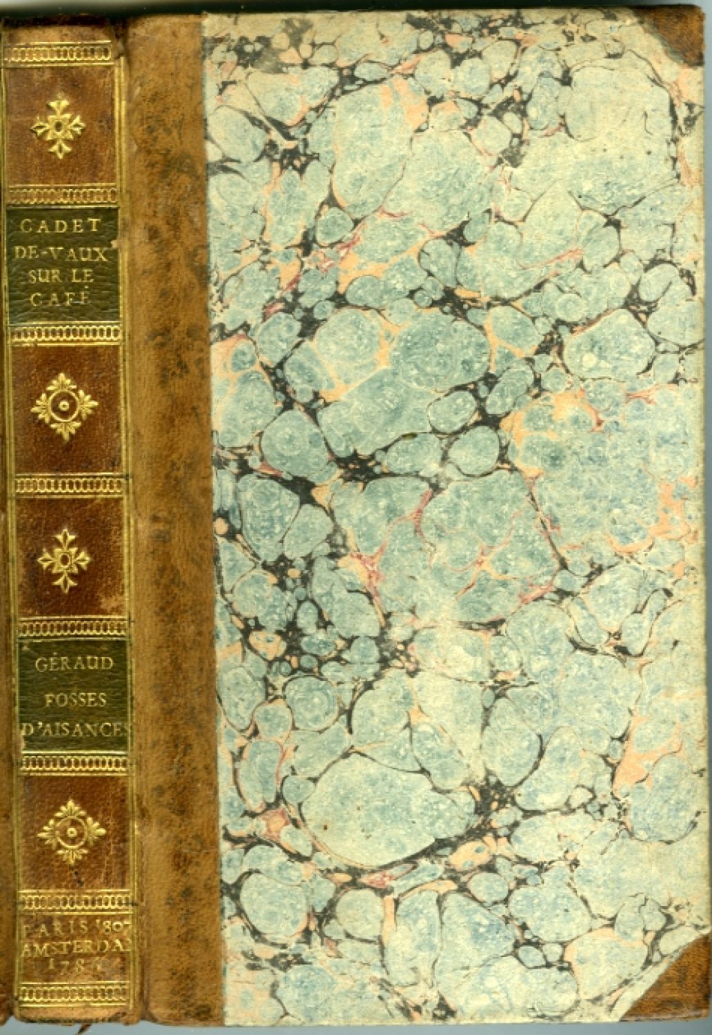 První vydání tohoto klasického pojednání o kávě, jež sepsal francouzský chemik a farmaceut Antoine-Alexis Cadet de Vaux (1743-1828). Obsahuje kapitoly o dějinách kávy a jejích blahodárných účincích na vyjmenované neduhy a pokračuje oddílem, jehož autorem je synovec prvního, rovněž farmaceut a profesor chemie Charles-Louis Cadet (1769-1821), popisující různé druhy přípravy kávy a její chemickou analýzu. (Vicaire, sl. 138)<br>