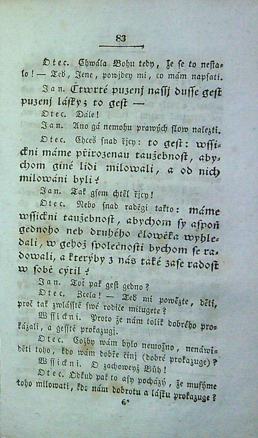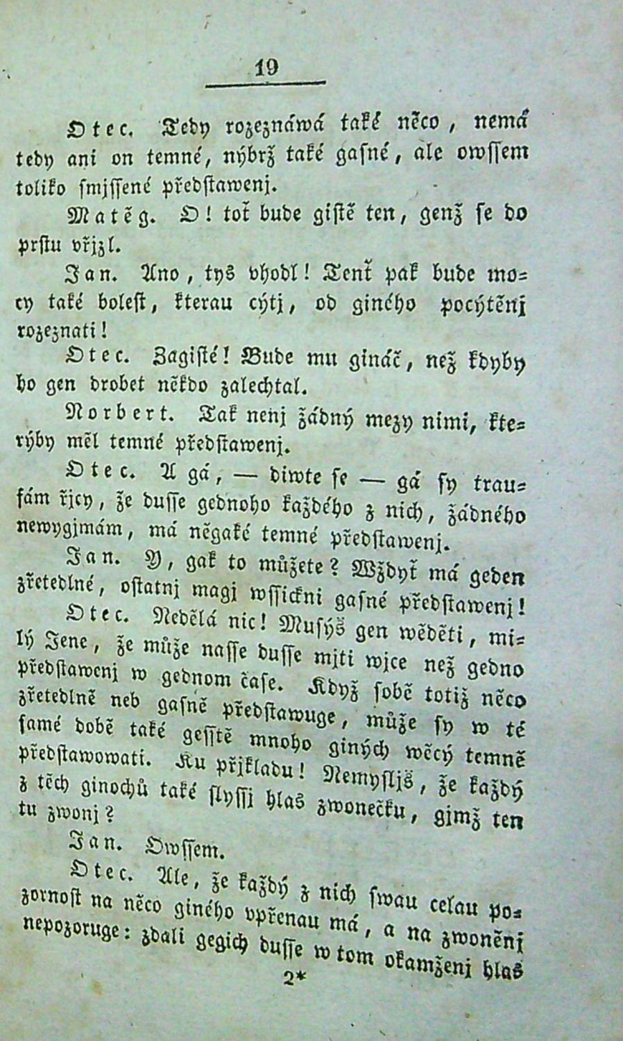 Jungmann VI. 1163; Doucha s. 88 (uvádí nakladatele B. Rohlíčka)<br>Tištěno švabachem, tištěné poznámky pod čarou, arabská paginace stran uprostřed horního okraje nad krátkou linkou.