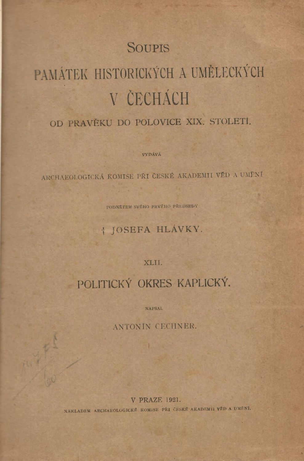 Soupis památek historických a uměleckých v politickém okresu kaplickém. Díl XLII