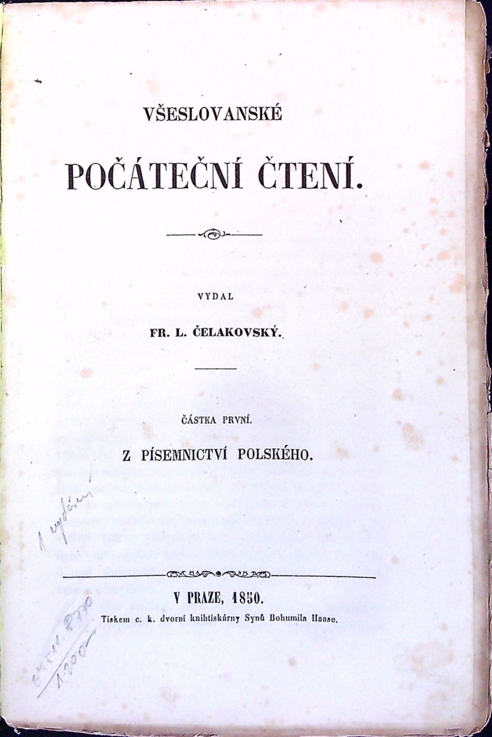 Všeslovanské počáteční čtení. Částka první. Z písemnictví polského.