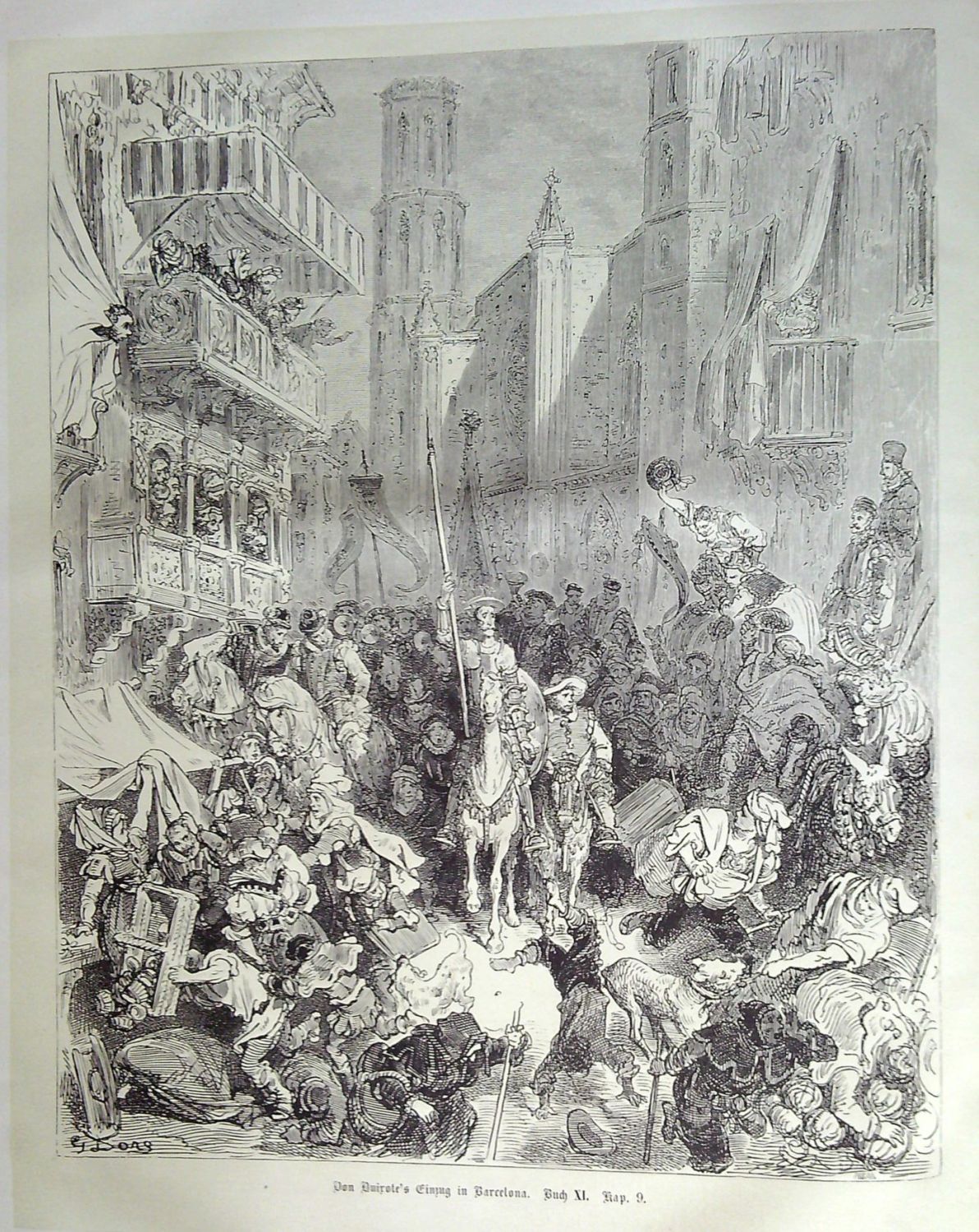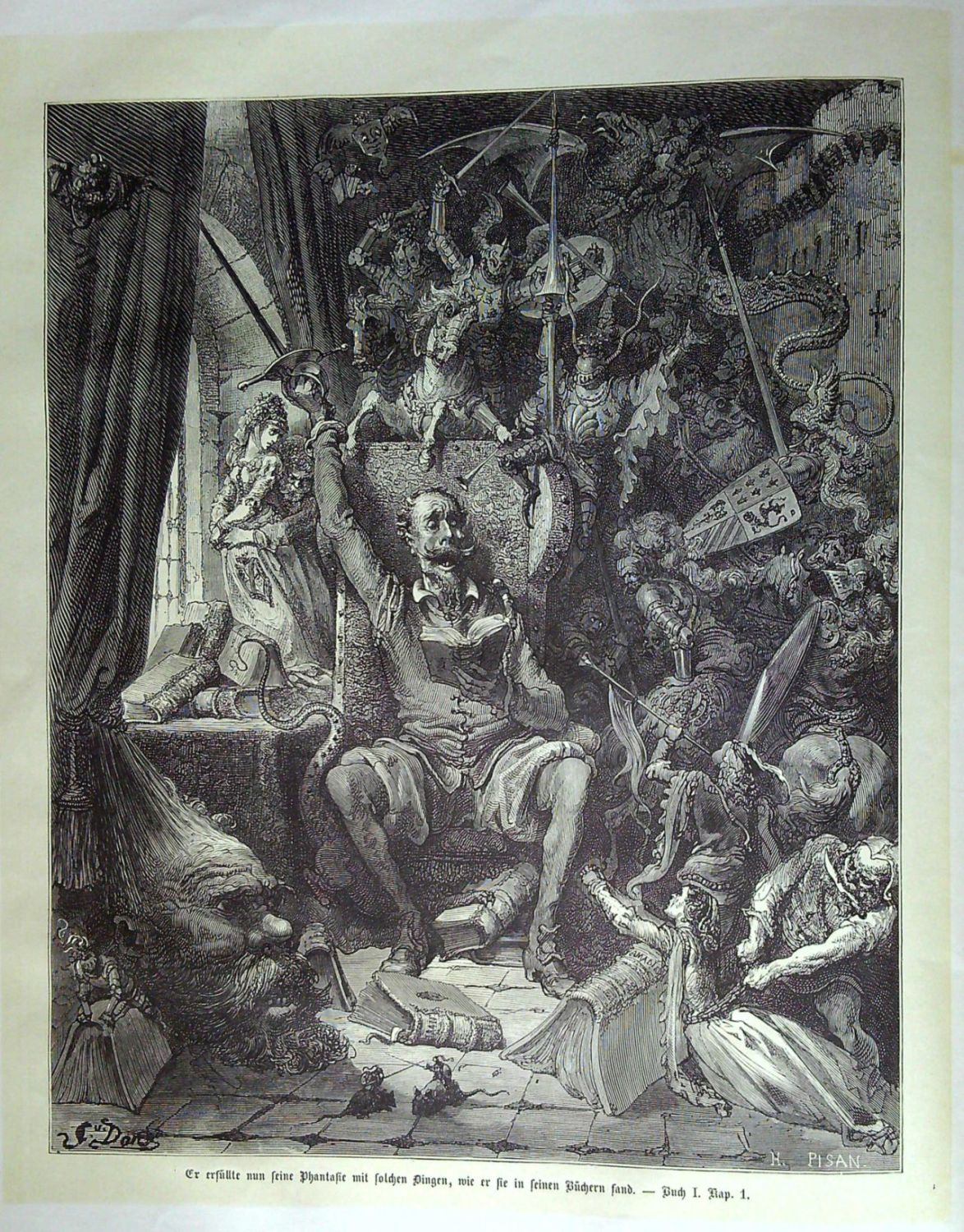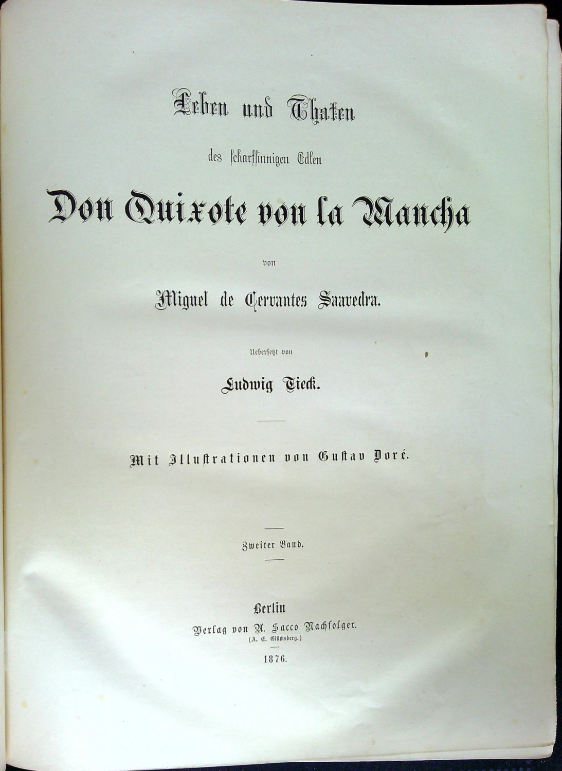 Leben und Thaten des scharfsinnigen Edlen Don Quixote von La Mancha ... Uebersetzt von Ludwig Tieck. Mit Illustrationen von Gustav Doré. Erster + zweiter Band.