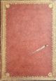 Původní vazba z temně červeného marokénu, na obou deskách tlačený a zlacený rám z ornamentů, ve hřbetu 8 vazů, zlacené ořízky. Na přídeštích a předsádkách dobový tragantový papír. Vazba lehce zašpiněná a místy odřená, knižní blok ve stavu intaktním.