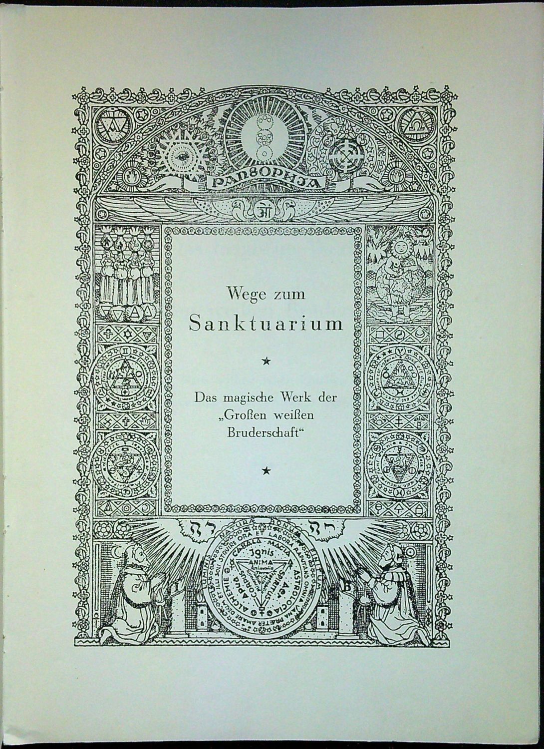 Wege zum Sanktuarium. Das magische Werk der "Großen weißen Bruderschaft". Nach authentischen Quellen als Kommentare zur "Botschaft der Meister". Ausgewählt und übertragen vom "Collegium pansophicum" i. A. Fra.: (značka Saturnu) us. (= Karl Johannes Germer).