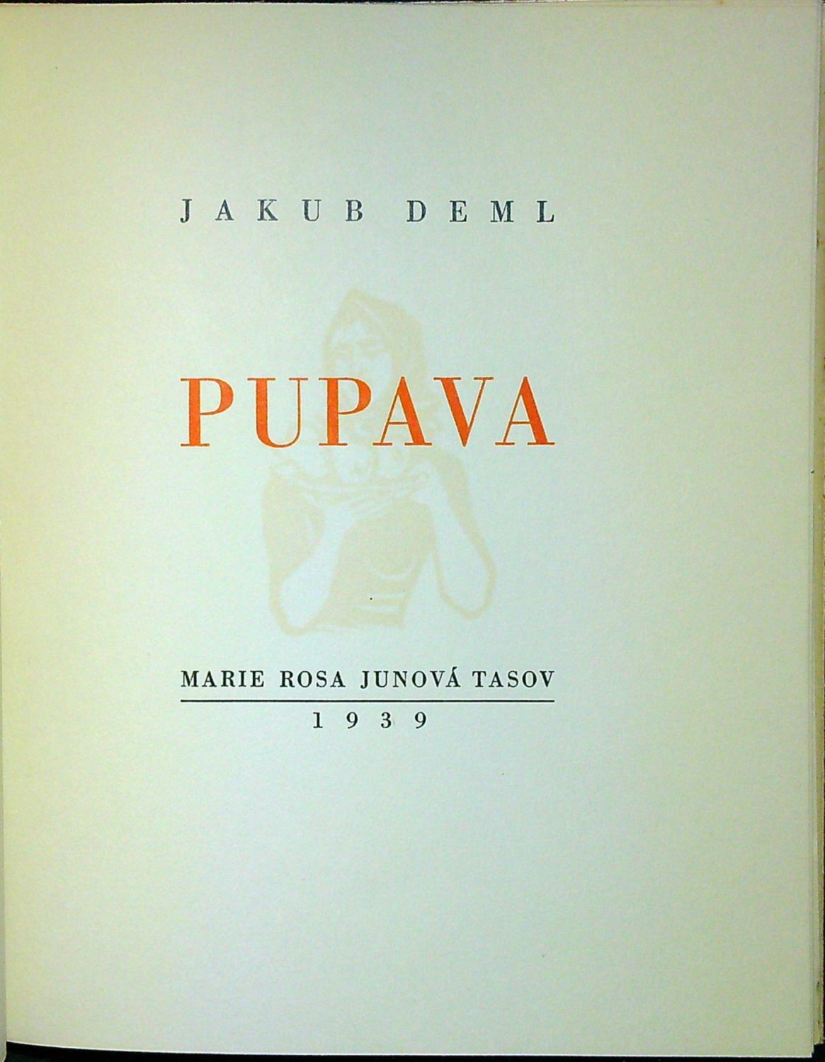 Sáňka 2879<br>Jeden z neudaného počtu výtisků, tištěno písmem Empiriana Bodoni na ofsetový papír, vytiskl J. Peksa a typograficky upravil J. Kapinus. Dvoubarevně tištěný titulní list, rumělkou tištěná vstupní iniciála. - Kniha vyšla u příležitosti 5. výročí smrti Josefa Demla. Na předním vakátu podpis autorův.