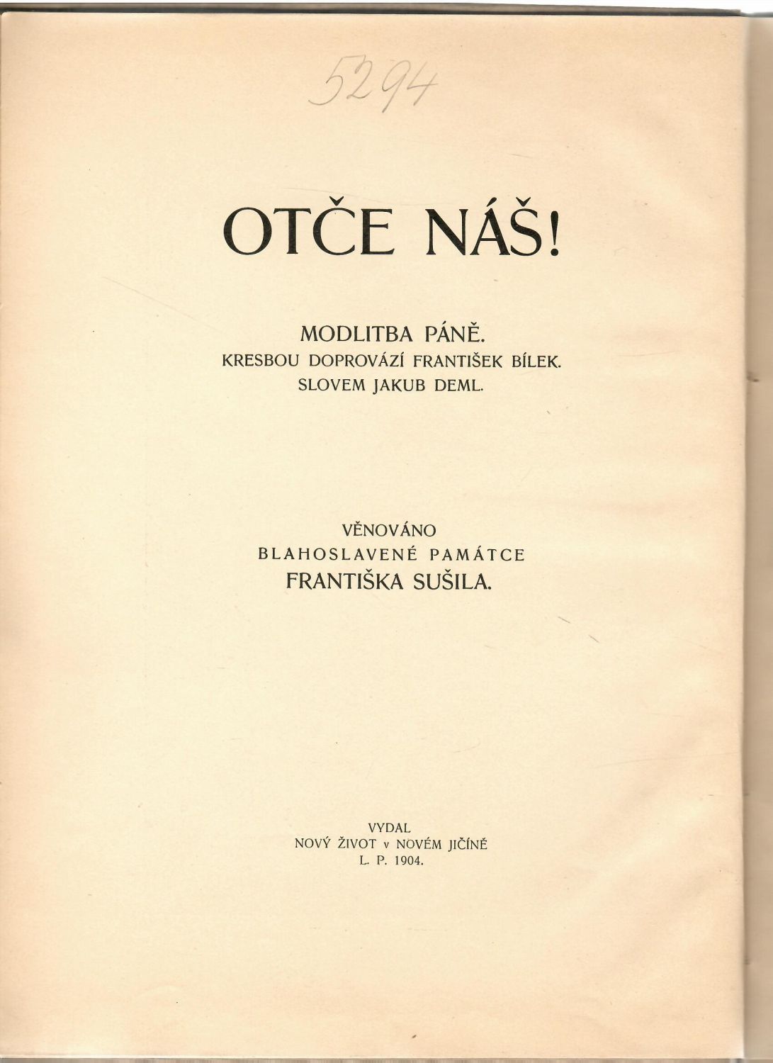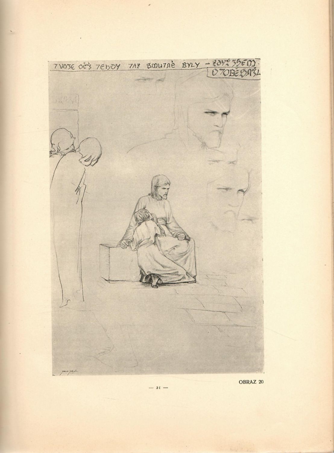 | Ilustrace: | Titulní list na podkladu Bílkovy hlubotiskem provedené ilustrace, za titulním listem fotografická reprodukce portrétu Františka Sušila jehož památce je kniha věnována, v textu řada černobílých vyobrazení kreseb Fr. Bílka a několik fotograf. vyobrazení Bílkových sochařských prací. |