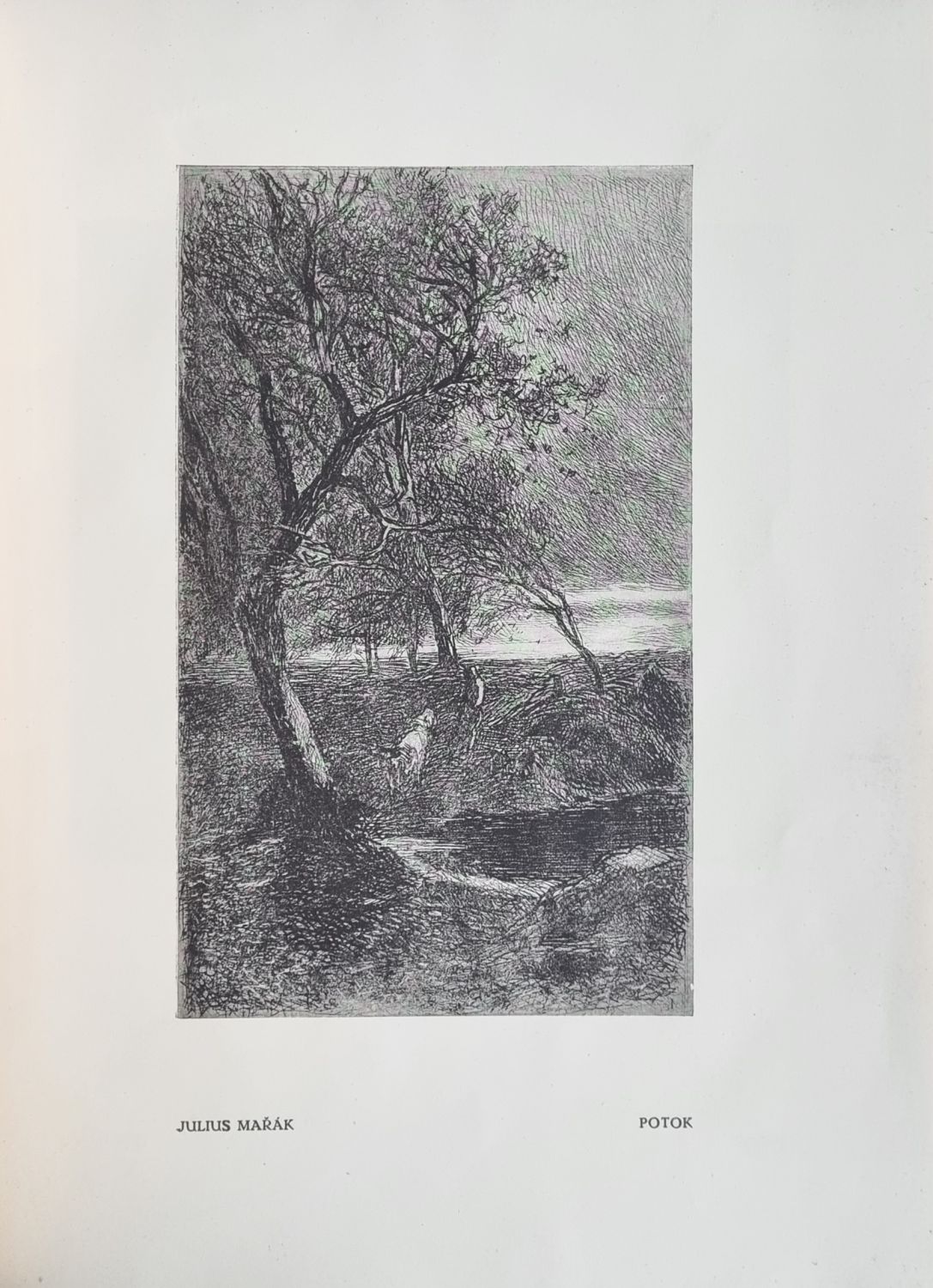 | Ilustrace: | V textu 4 původní dřevorytové přílohy (J. Benda "Františkánský klášter v Dubrovníku", Fr. Bílek "Tvůrce a dílo", Josef Váchal "Fantasie", F. Kobliha "Smrt Tintagilova"), za textem na 16 listech reprodukce grafických listů. |
