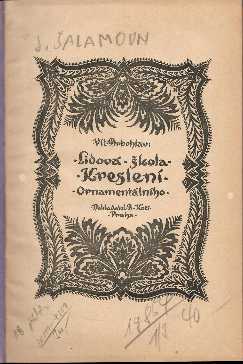 Poloplátěná vazba. Desky potaženy světle zeleným papírem. V knize vevázány dvě papírové chlopně (z toho jedna natržena), ve kterých je uloženo celkem 16 listů s barevnými reprodukcemi ornamentálních kreseb. Listy stářím zažloutlé. Na titulním listu tužkou podpis Jiřího Šalamouna.