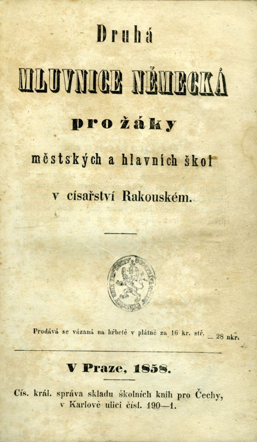 Druhá mluvnice německá pro žáky městských a hlavních škol v císařství Rakouském.