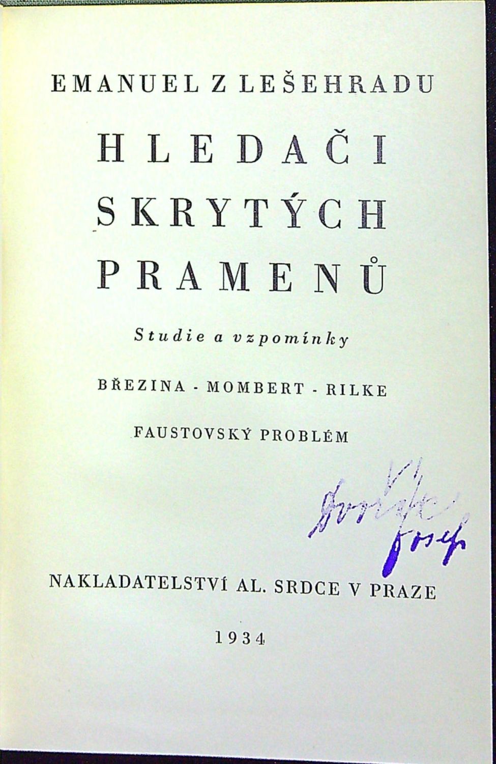 Hledači skrytých pramenů. Studie a vzpomínky Březina - Momberet - Rilke - Faustovský problém.