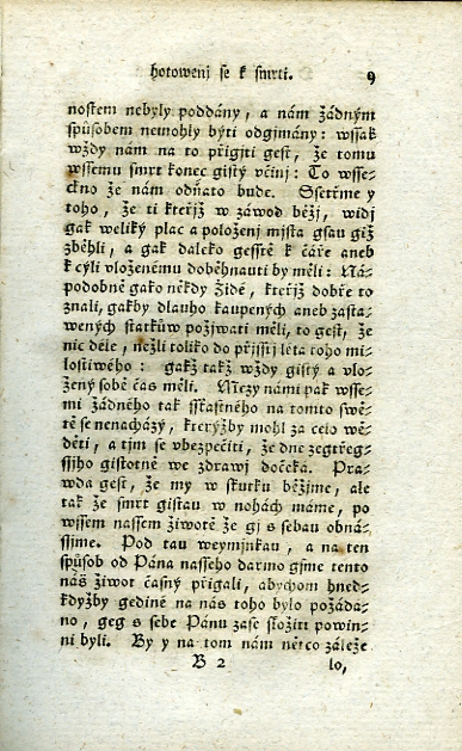 Knihopis 2360<br>Tištěno frakturou, signatury, stránkové kustody, živá záhlaví, na titulním listu drobná viněta, tučně tištěné iniciálky ve výši dvou řádků. Z latinského jazyka do češtiny přeložil Jan z Lobkovic.<br>Dobová kartonová vazba s šedomodrým dobovým papírovým pokryvem, papírový pokryv při horní části hřbetu z části sedřený, při spodním okraji hřbetu zbytky papírového knihovnického štítku, na přední i zadní desce stopy po odtrženém štítku. Na rubu titulního listu staré razítko knihovny Thun-Hohensteinů z Děčína, nad razítkem staré razítko VŠ pedagogické v Praze se starými knihovnickými čísly.