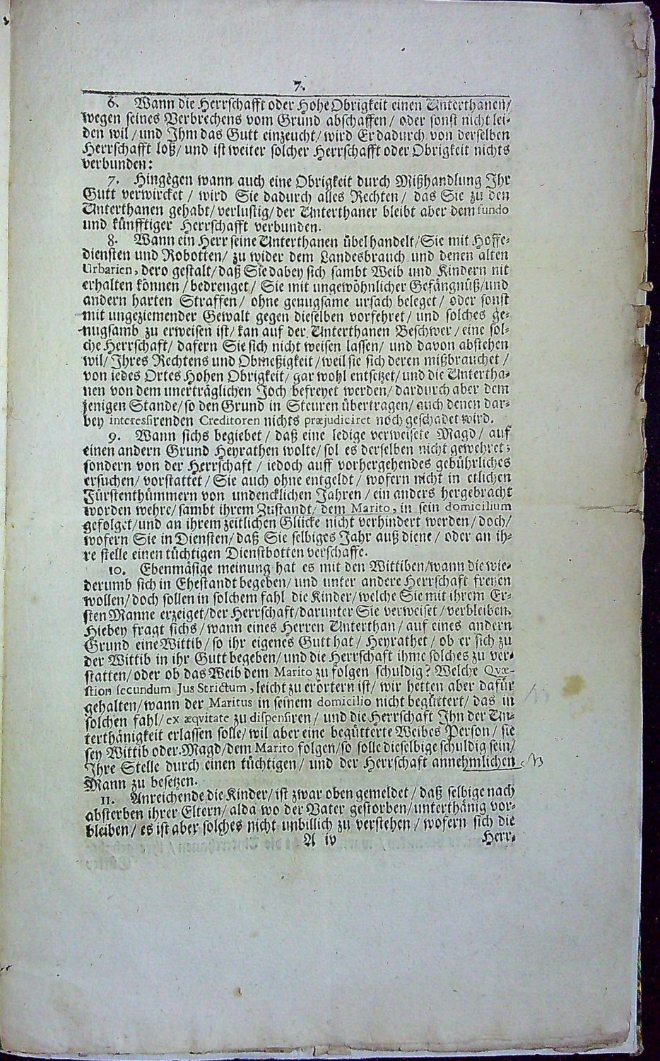 Tištěno švabachem, latinská slova antikvou, arabská paginace stran uprostřed horního okraje od sazby oddělená jednoduchou linkou, na tit. listu viněta s císařskou orlicí, v záhlaví první čísl. strany pásový vlys z drobného ornamentu, vstupní majuskulní iniciála propletená úponky zalomená do výše 21 řádků. - Titulní list při vnitřním okraji podélně podlepený v šíři cca 0,5 cm, ostatní listy podél vnitřního okraje mírně roztřepené a pří vnějším okraji uprostřed v jednom místě natržené (cca 2 cm). - Císařský výnos určený šlechtě Horního a Dolního Slezska jak se má zacházet s dopadenými uprchlými poddanými.