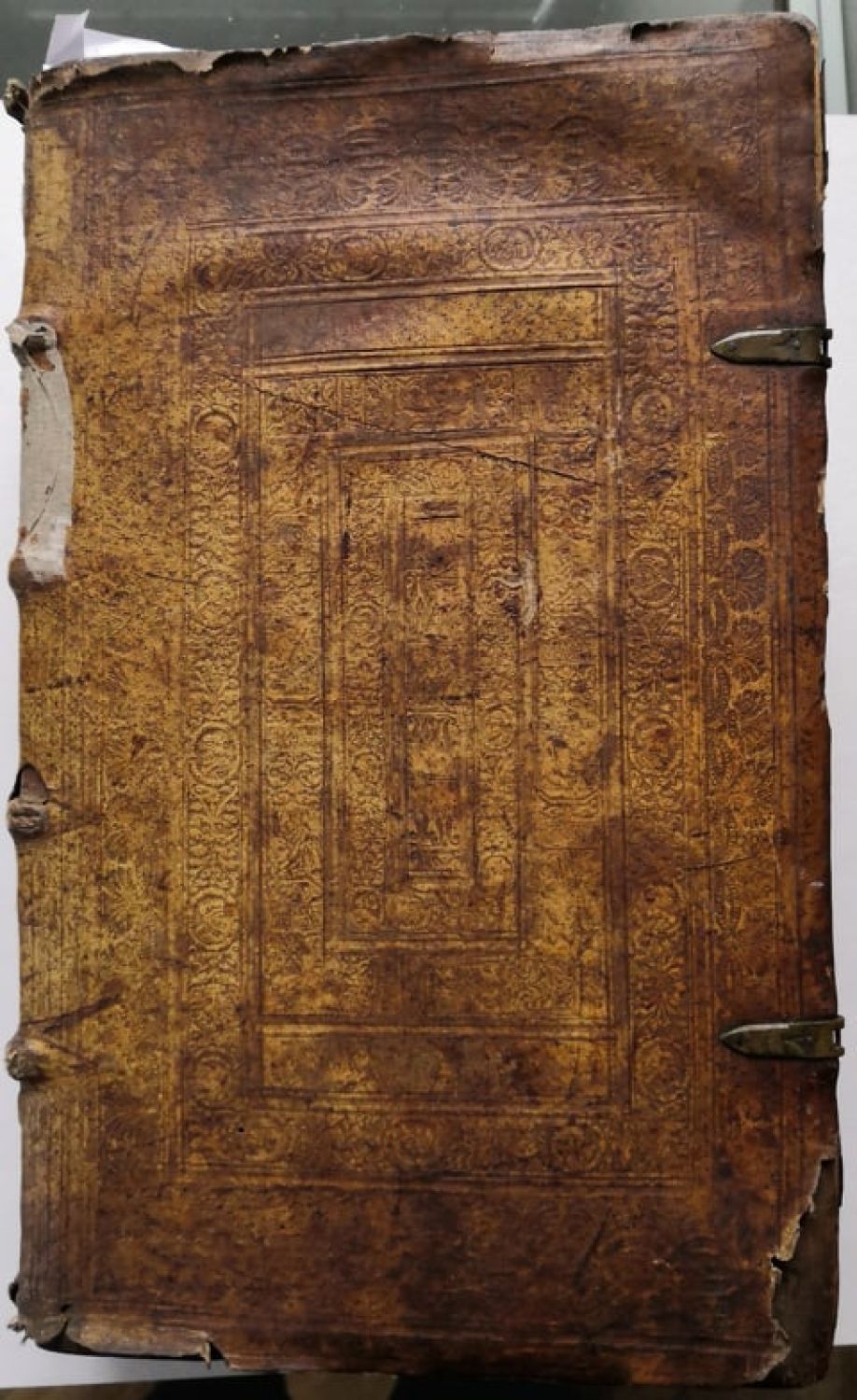 Dvoubarevně (červeno-černě) tištěné titulní listy všech tří dílů, na každém dřevořezová viněta s císařskou orlicí, korunou a znakem Českého království, s rytým jménem a tituly panovníka Rudolfa II. Konturové iniciály s propletenými úponky zalomené do výše 3-9 řádků, iniciály na rostlinném pozadí ve výši 5-6 řádků, viněty, živá záhlaví, tištěné poznámky po stranách, gotika, latinský text antikvou, chyby v paginaci.<br>Dobová renesanční vazba. Dřevěné desky potažené světlou vepřovicí zdobenou slepotiskem. Dvojitý rám, vnější zdobený rostlinným ornamentem, vnitřní bustami světců a církevních otců, ve hřbetu 4 vazy, na přední desce původní kovové úchyty. Vazba ohmataná a odřená, při spodním okraji přední desky chybí kousek koženého pokryvu, pokryv na desce zadní potrhaný, na několika místech proděravělý s chybící kousky kůže. Na předním přídeští provenienční přípis ze 17. století ("Adversis patientia Vinco S. Joannis Grebelii de Lübenwerda Comparavit nuc Vienna 3 1/2 fl. Anno 80. Adiutorium nostrum in no[m]e D[omi]ni cui fecit coelum et terra[m]. Psal[m] 123". Na tit. listu provenienční zápis na nalepeném lístku: "Dieses Buch habe ich, Andreas Josephus Lambser damahliger Pfarer in Schonau aus der ?? Fundation vor Katholische Bibl dem Michael Haberlandt verkauphet im Jahr 1714 d. 24 Maij Andreas Josephus Lambster Pfarer in Schonau". Při levém okraji na nepotištěném místě chybí kus papíru o cca rozměru 25 x 35 mm, přelepeno kouskem papíru.<br>Jacob Feucht (1540-1580), byl německý katolický teolog a universitní profesor, titulární biskup v Athyře a pomocný biskup v Bambergu. Byl zastáncem reformy v církvi což vedlo k jeho konfliktům s vedením kapituly v Bambergu.