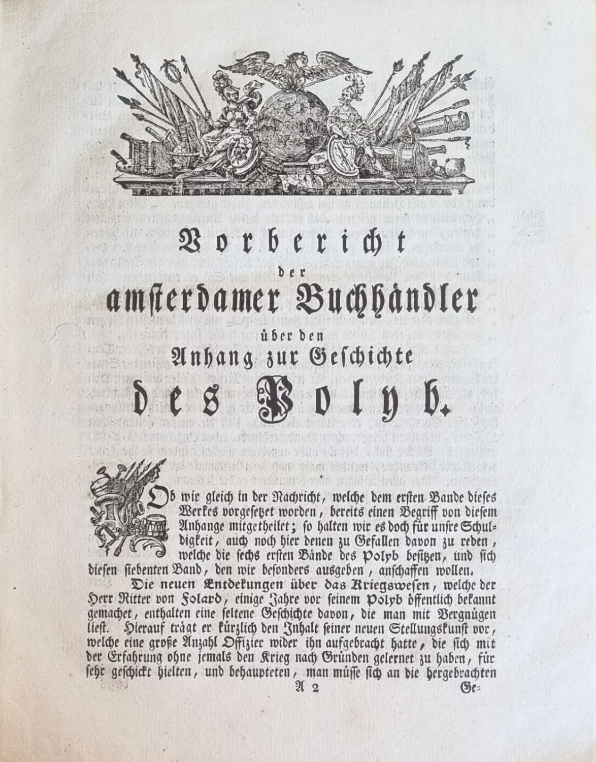 Anhang zur Geschichte des Polyb, mit den kriegerischen Auslegungen des Herrn Ritter von Folard, enthaltend die neuen Entdeckungen vom Kriege, durch eben den selben; kunstrichterliches Sendschreiben eines holländischen Offiziers; und Meynungen eines Kriegsmannes von dem kriegerischen Lehrgebäude des Ritters Folard; den Antworten auf diese kunstrichterlichen Beurtheilungen Aus dem französischen übersetzet.