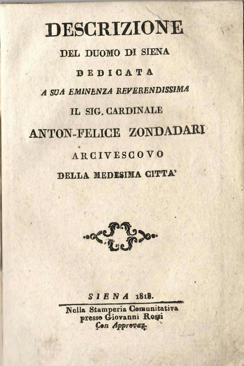 Descrizione del duomo di Siena dedicata a sua emunenza reverendissima il sig. cardinale Anton-Felice Zondadari arcivescovo della medesia citta.