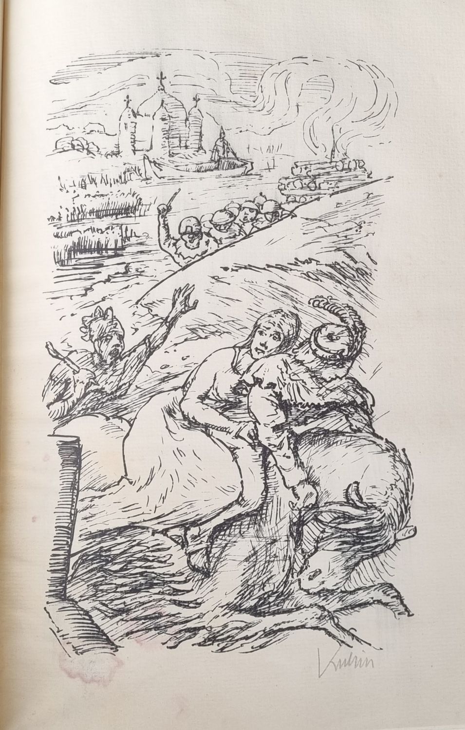 Jeden z 25 výtisků vydání A číslovaných 1-25 (tento ex. zůstal nečíslovaný). Vyšly tři varianty s tištěnými písmeny A, B, C (B 26-75, C 76-600). V textu 24 červeně tištěných iniciál na modrém podkladu zdobeném bílým florálním ornamentem, iniciály zalomené do výše tří řádků. Šest grafických příloh, původních litografií A. Kubina (z toho jsou 4 autorem tužkou podepsané). <br>Původní vazba s deskami potaženými hnědou hovězinou, zelený plátěný hřbet s tlačeným a zlaceným názvemn uprostřed přední desky původní zeleně barvený kožený štítek s tlačeným a zlaceným znakem edice. Plátěný pokryv při spodním i horním okraji lehce odřený, zlacení ve hřbetu vybledlé. Místy v textu vybledlé světlé skvrny, knižní blok odborně restaurovaný, papír odkyselený, papír na přídeštích a předsádkách s filigrány.