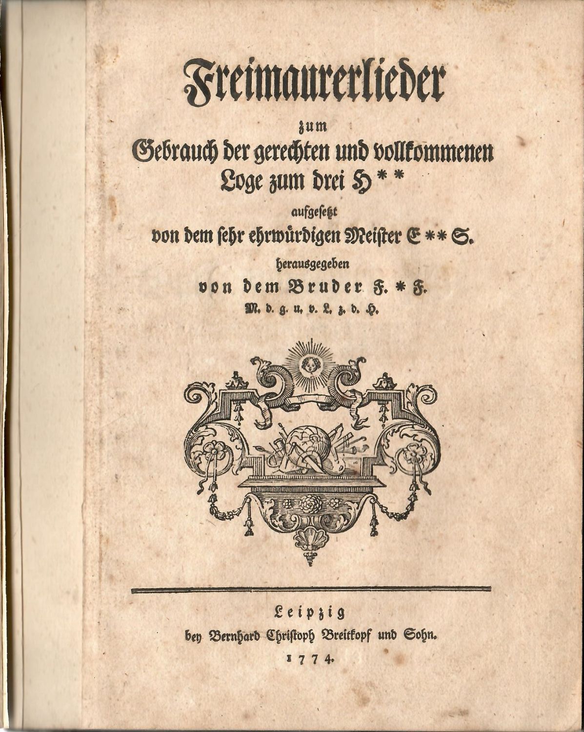 Freymäurerlieder mit neuen Melodien, zum Besten der neuen Armenschule zum Friedrichstadt bey Dressden.