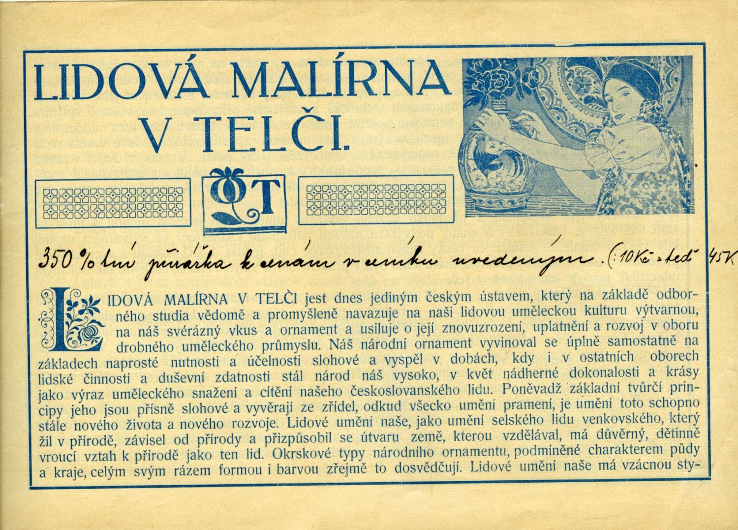 Lidová malírna [místního odboru Národní Jednoty pro jihozápadní Moravu] v Telči.