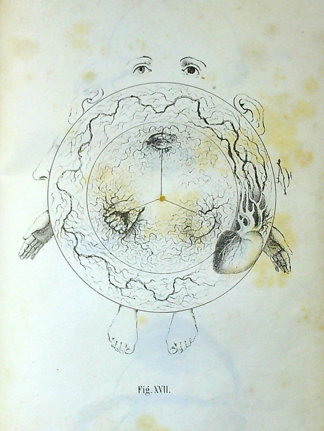 Jungmann VI,1168; Doucha str. 47<br> Kartonová vazba s deskami potaženými mramor. papírem. Pokryv desek lehce zvlněný, na zadní desce cca v jedné polovině zčásti sedřený, při horním okraji hřbetu nalepeny pap. štítky, hřbet u přední desky naprasklý, titulní list zahnědlý, v textu tu a tam světlé hnědé skvrnky a mapy, na tabulích též, výrazněji na poslední. Místy oslí uši, okraji několika stran zašpiněné.Na tit. listu podpis Jiřího Šalamouna tužkou a staré razítko majitele dřívějšího "W. Křikawa".<br>Velmi kuriosní práce o člověku, jeho duši a stavech mysli s vysvětlujícími 23 obrázky na 16 tabulích.<br>Václav Frost (1814 Nosalov - 1865 Konojedy), pedagog hluchoněmých. Nejprve působil jako kaplan ve Mšeně, později byl ředitelem pražského ústavu hluchoněmých. Roku 1848 byl poslancem říšského sněmu.<br>Václav Koťátko (1810 Jenišovice u Turnova - 28. 10. 1876 Praha), pedagog hluchoněmých a lidumil. Působil jako kooperátor ve Mšeně, po odchodu V. Frosta do Prahy se zabýval výchovou tamních hluchoněmých. Od roku 1841 učitelem, později ředitelem ústavu pro hluchoněmé v Praze. Zasloužil se o zavedení českého vyučování hluchoněmých. Spolupodílel se na založení ústavů pro hluchoněmé v Hradci Králové a v Českých Budějovicích. Autor několika učebnic pro hluchoněmé.