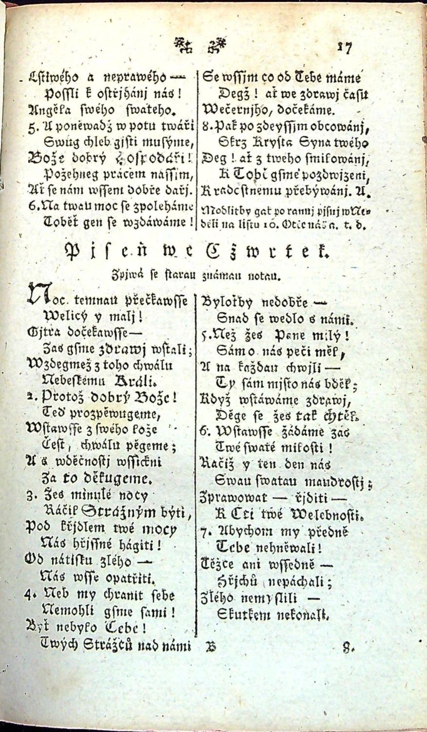 Katolický Kancyonál, k wzdělánj a roznjcenj skutečné, weřegné y domácý křestianské pobožnosti. Obsahugicý rozličné pjsně rannj a wečernj na každý den - při wssech skutcých dennjch - k weřegným službam Božjm w Neděli, ke mssi swaté, požehnánj - k odpolednj pobožnosti, Litanye, Nesspory etc. gakož y ke mssi swaté na den wssednj celého týhodnu; ......