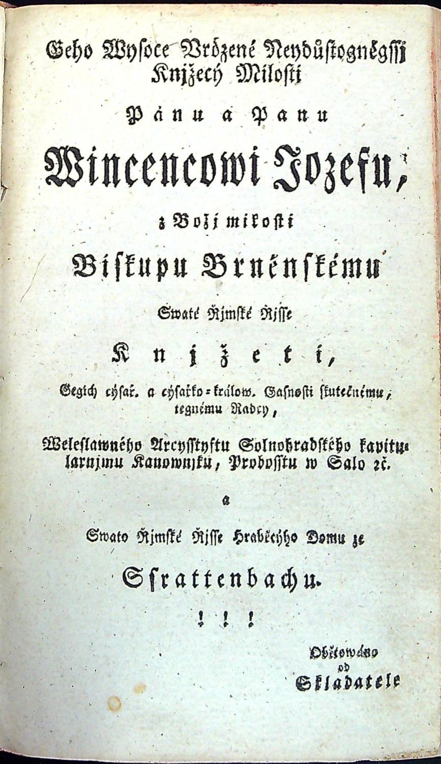 Knihopis 2611 (neuvádí přílohy s notací); Jungmann VI,224<br>Tištěno švabachem, místy ve dvou sloupcích oddělených jednoduchou linkou, uprostřed horního okraje stran drobné rostlinné ozdůbky, tučně tištěné versálky, ozdobné tyče, mizící linky. Na konci autorovy předmluvy k tomuto vydání se autor zmiňuje o vyrytí 6 příloh s notací.<br>Dobová vazba s kartonovými deskami potaženými mramorovaným papírem, kožený hřbet a nárožnice, ve hřbetu 3 vazy. Na několika listech při spodním vnějším okraji drobná cestička způsobená červotočem. Na přední předsádce černým perem prov. záznam "Tato kniha v září dostaná od Jana Holeho. A daná ? v září ? Josefovi Prenzlerovi v ? Roku 1814". Na předním přídeští nalepeno ex libris významného trutnovského sběratele Jaroslava Jiráska.<br>Ján Hollý (24.3. 1785 Borský Mikuláš - 14.4. 1849 Dobrá Voda) slovenský básník a překladatel, na Slovensku mnohdy nazýván "slovenským Homérem", katolický kněz.