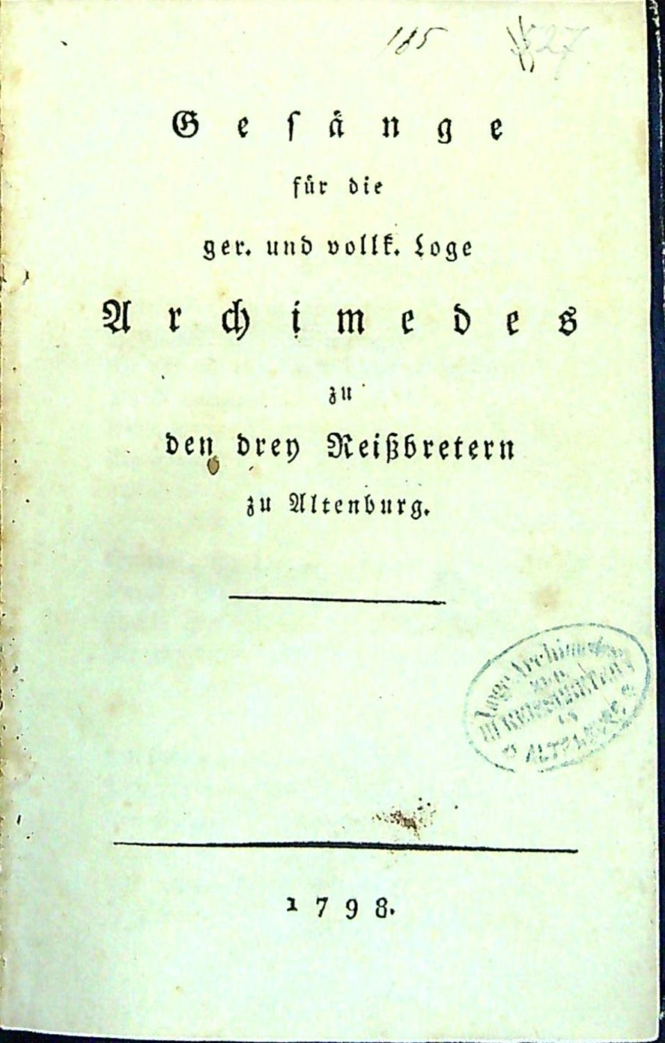 Gesänge für die ger. und vollk. Loge Archimedes zu den drey Reissbretern zu Altenberg.