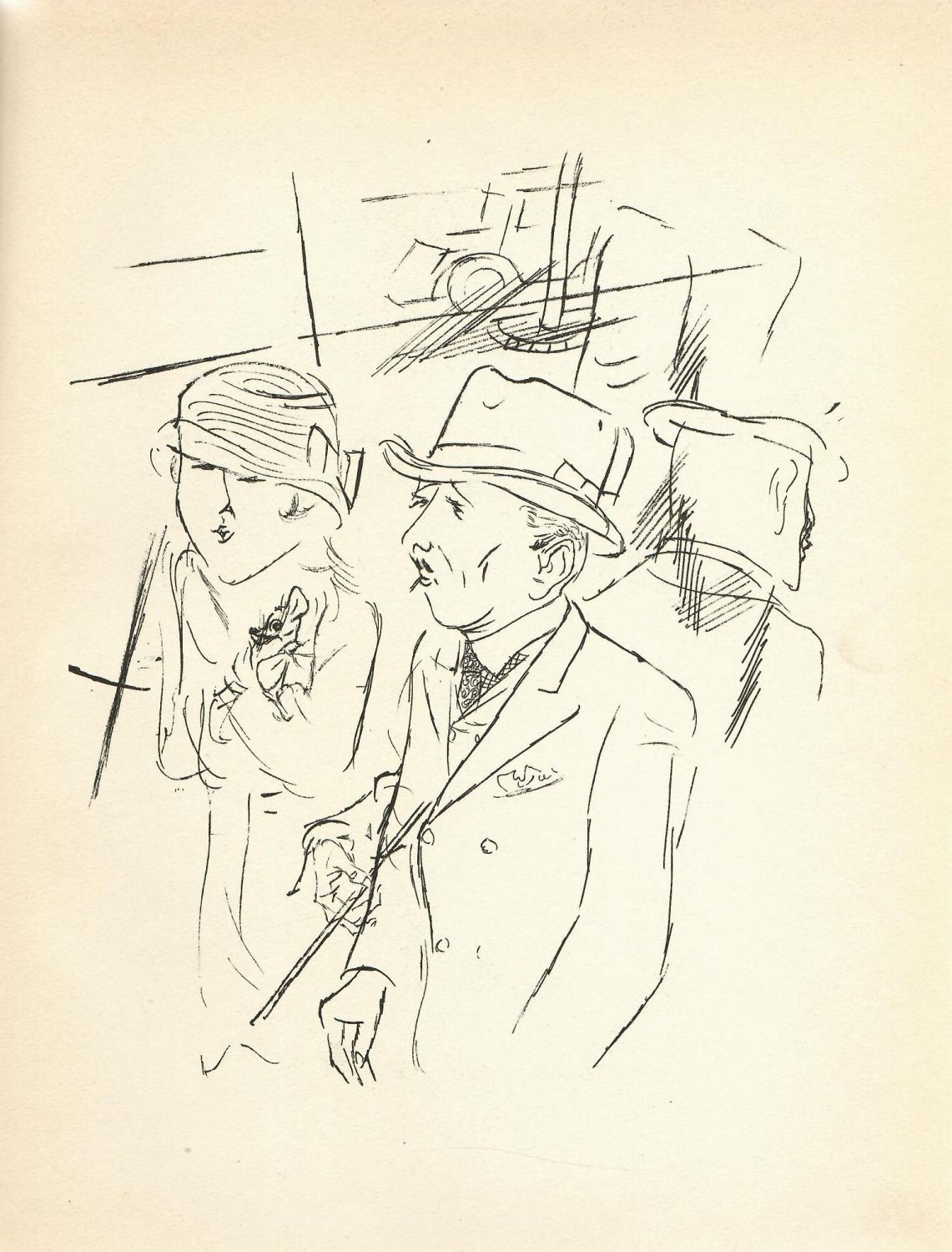 Původní červená, plátěná vazba s černě vytlačeným věcným a jmenným názvem na přední desce. 60 celostr. reprodukcí Groszových prací na 120 stranách. Vazba mírně zašpiněna, str. 103 mírně natržena.<br/>3 Bll. und 60 ganzseitige Zeichnungen auf 120 Seiten. Orig.-roter Lwd. mit schwarzem Titel auf dem Vorderdeckel und am Rücken.<br/>Erste Ausgabe. Mit einem Vorwort des Künstlers.