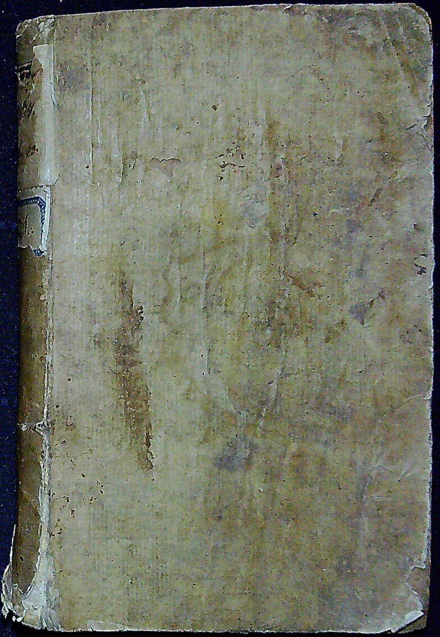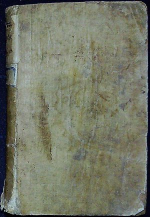 Dobová vazba s destičkami z prkének potaženými škrobovým papírem, papírový potah zvrásněný a zašpiněný, při spodním okraji hřbetu papír natržený, při horním okraji hřbetu staré papírové knihovnické štítky, naražené rohy. Na straně 64-65 dvě malé černé mapky od inkoustu.