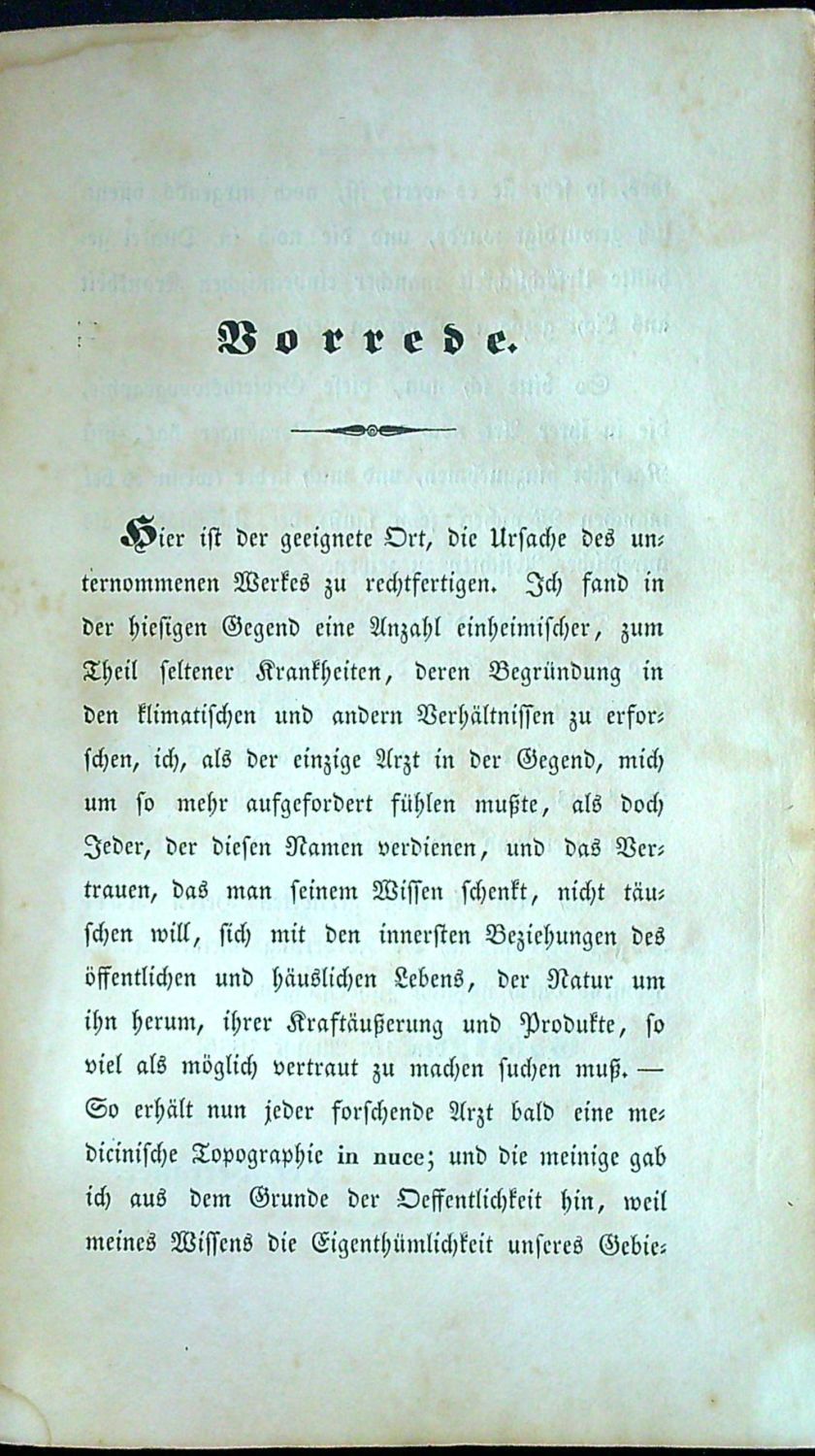 Tištěno švabachem, latinská slova antikvou, tištěné poznámky pod čarou, arabská paginace stran uprostřed horního okraje od sazby oddělená dvojitou mizící linkou. Za textem rozkládací ocelorytinová mapa s vyobrazením panství Lemberk.<br>Původní pap. obálka, papír místy zahnědlý, na listu s mapou chybí při spodním okraji malý kousek papíru (bez zásahu do tisku). - Autor byl hlavním lékařem na lemberském panství Clam=Gallasů, v knize se snaží najít souvislosti mezi různými chorobami, které se v oblasti vyskytovaly a místními přírodními poměry, jedna kapitola je také věnována dějinám lemberského panství a města Jablonného v Podještědí. (Jedná se o jednu z nejstarších prací zabývajících se dějinami Jablonného a Lemberka).