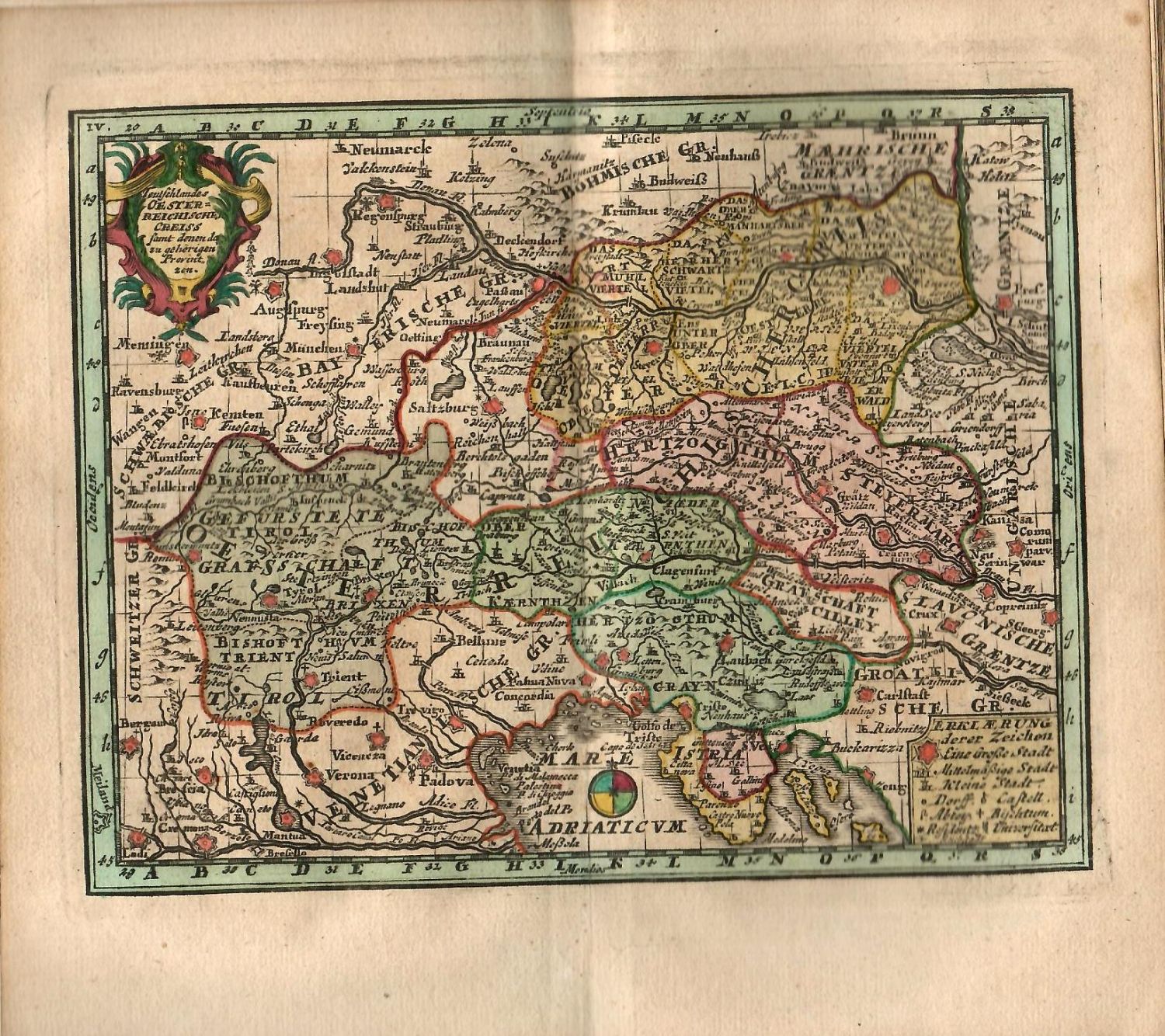 Ve front. mědirytina s vyobrazením římského císaře, mezi str. 54-55 rozkládací mědirytina s vyobrazením korunovace Karla VI. v chrámu sv. Bartoloměje ve Frankfurtu roku 1711, mezi str. 60-61 rozkládací mědirytina s vyobrazením korunovačního banketu, mezi str. 298-299 kolorovaná mědirytina, mapa Rakouské oblasti a přilehlých krajů, mezi str. 472-473 rozkládací genealogická tabule rakouských panovníků, v textu 3 přílohy (jedna dřevořezová, dvě mědirytinové) s vyobrazením královských insignií a medailí s portréty panovníků. Dřevořezové viněty, vlysy. <br>Dobová vazba z tmavé hověziny, ve hřbetu 4 vazy, ve druhém poli tlačený a zlacený název, ve třetím poli vyznačení dílu. Na předsádkách dobový tragantový papír. Vazba ohmataná, při spodním i horním okraji hřbetu mírně natržená. <br>Pouze II. díl ze XVI vydaných.